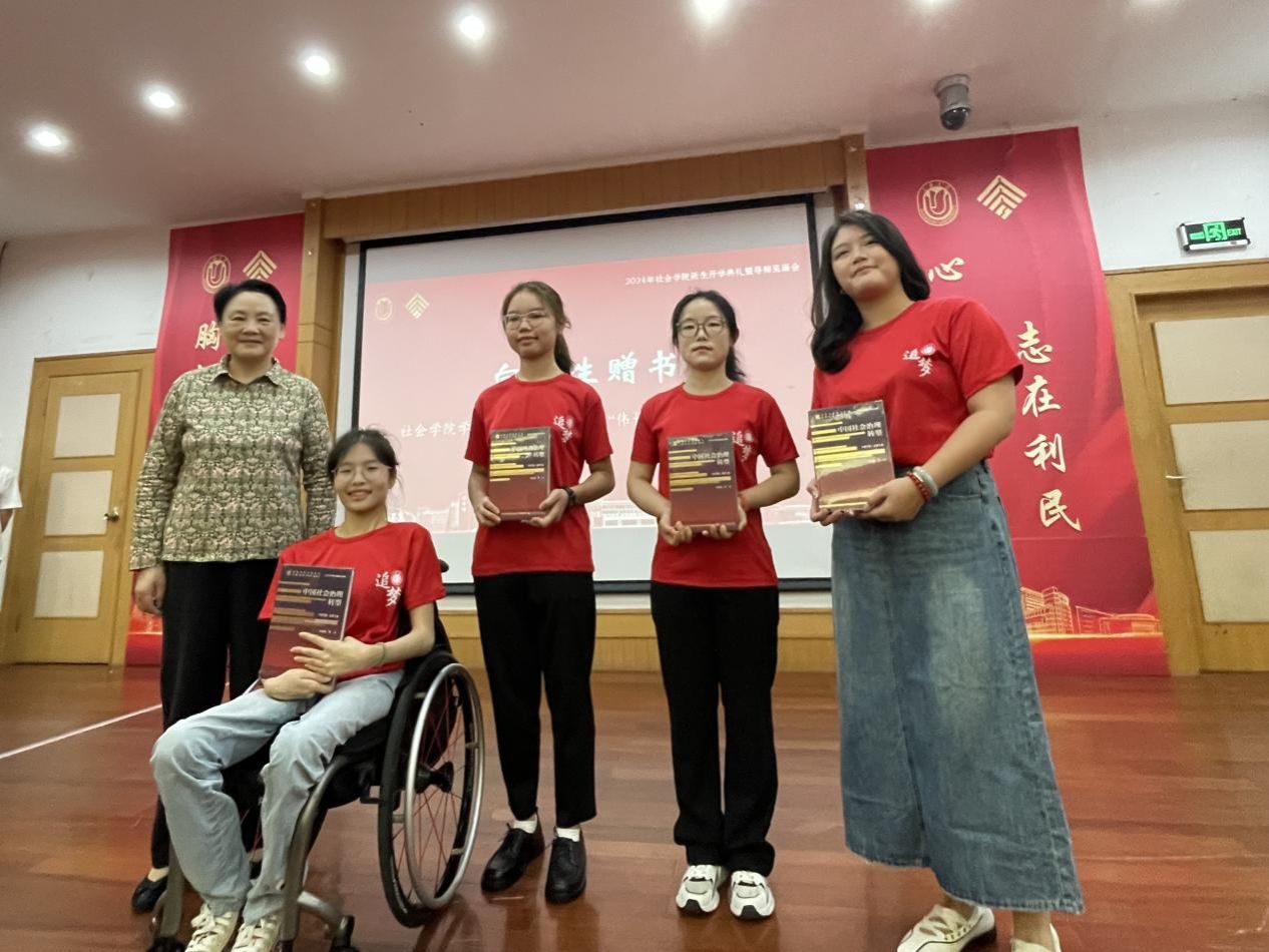 随后,社会学院学科带头人、beat365唯一官网“伟长学者”特级岗教授李友梅老师为新生代表们赠书。社会学院多年来读书会蔚然成风,拥有30多个读书会小组,形成了社会学院自由共享开放的学术氛围。学院以及李友梅老师希望借此机会能够勉励同学们多读书,勤思考,发扬社会学院的优良传统,开启属于自己的科研之路。
