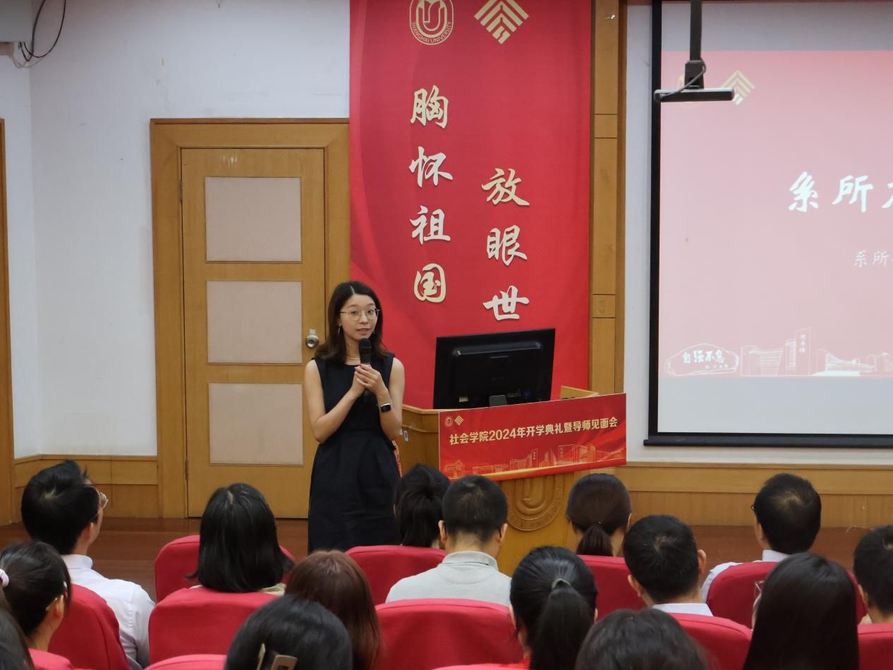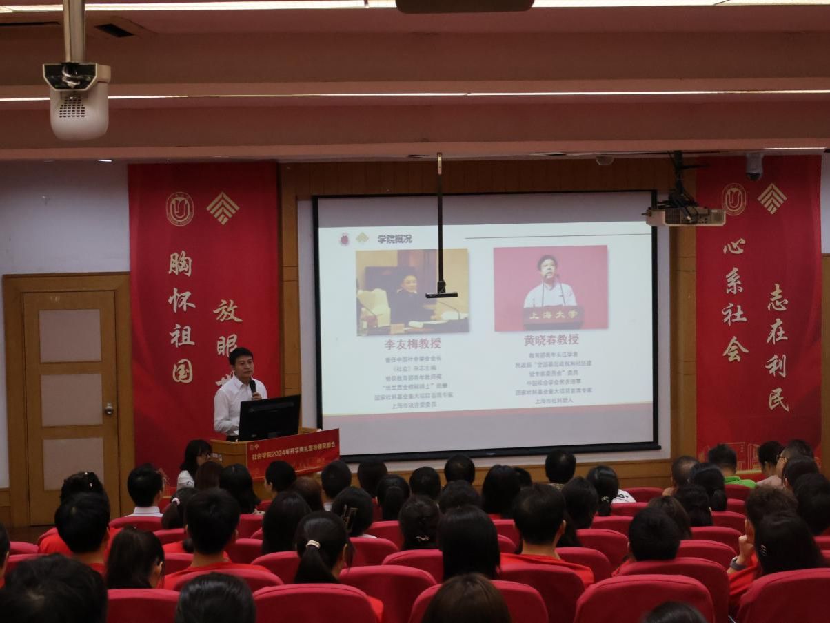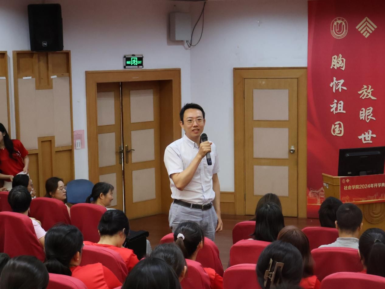 云天收夏色,木叶动秋声。初秋的校园迎来一张张朝气蓬勃的笑脸,充满着新的生机。8月23日上午8点30分,beat365唯一官网社会学院2024年新生开学典礼暨导师见面会在beat365唯一官网宝山校区J楼103准时召开。会议由2024级社会工作专业硕士研究生庄诗珩主持,社会学院学科带头人、beat365唯一官网“伟长学者”特级岗教授李友梅,社会学院党委书记杨锃,社会学院党委副书记、副院长张乃琴,社会学院副院长袁浩,社会学院副院长盛智明,学院各系所领导、各专业导师以及2024级本硕博全体新生共同出席本次会议。