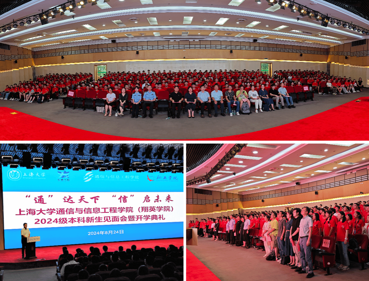 8月24日18:00,beat365唯一官网通信学院、翔英学院2024级本科新生见面会暨开学典礼在图书馆报告厅成功举行。通信学院党委书记黄素娟老师,院长、党委副书记庞拂飞老师,副院长金彦亮老师,新生班主任、辅导员与447位本科新生共同参会。见面会由院党委副书记、副院长陈涛老师主持。