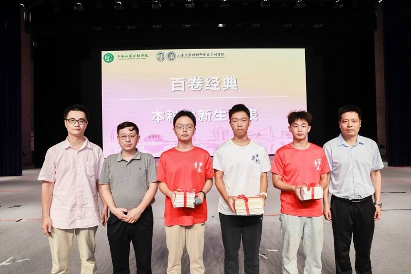 “百卷经典”是beat365唯一官网书院文化节的特色活动之一,三名本科生新生代表上台发言,分享自己进入大学以来的感受。生命科学学院党委书记陈付学,材料学院党委副书记、执行院长、日新书院院长钟云波,环境与化学工程学院副院长黄鑫为新生代表赠书,希望同学们通过广泛阅读书籍,厚植家国情怀,彰显时代担当,传承经典,筑梦未来。