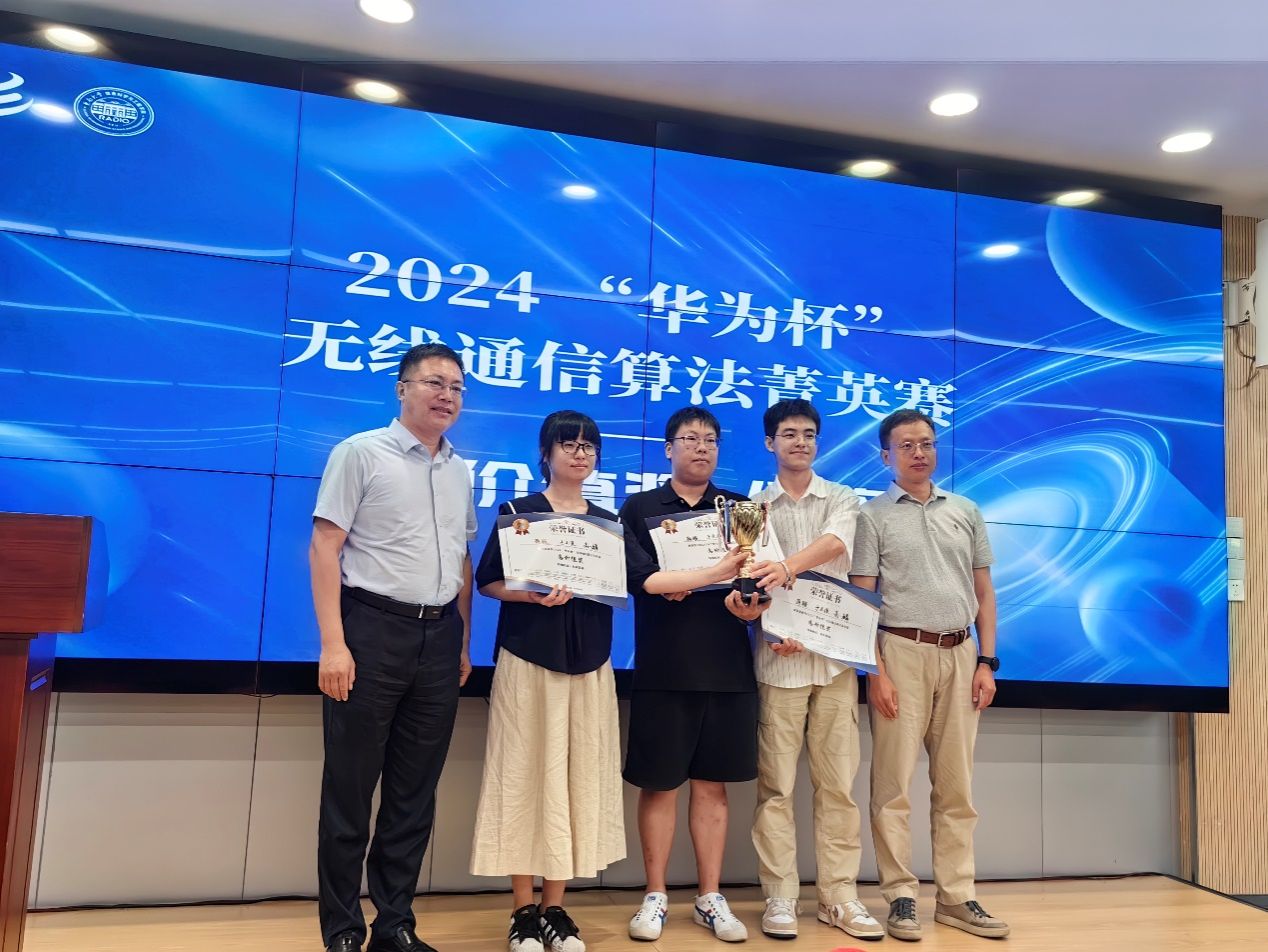 2024年9月7日, 2024“华为杯”无线通信算法菁英赛颁奖典礼在东南大学举行,本次大赛由东南大学和华为联合主办。beat365唯一官网通信学院的五支团队在比赛中表现优异,特别是徐树公教授、高塬老师指导的三支队伍包揽前三名。其中,由艾志奇、潘广进、段欣玥同学组成的信道小分队在全国总决赛中斩获总冠军,由蒋骏、高一麟、于文俊同学组成的信道无线队凭借其创新的算法设计,荣获高价值奖,展示了卓越的创新能力与技术实力。