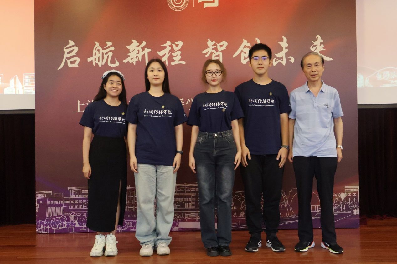 2024级硕士研究生新生王婧怡、刘佳怡、张百盈带来了由新闻传播学院研究生会自主填词改编的歌曲《上大有我》,抒发他们对新闻传播学院的满腔炽热之情。