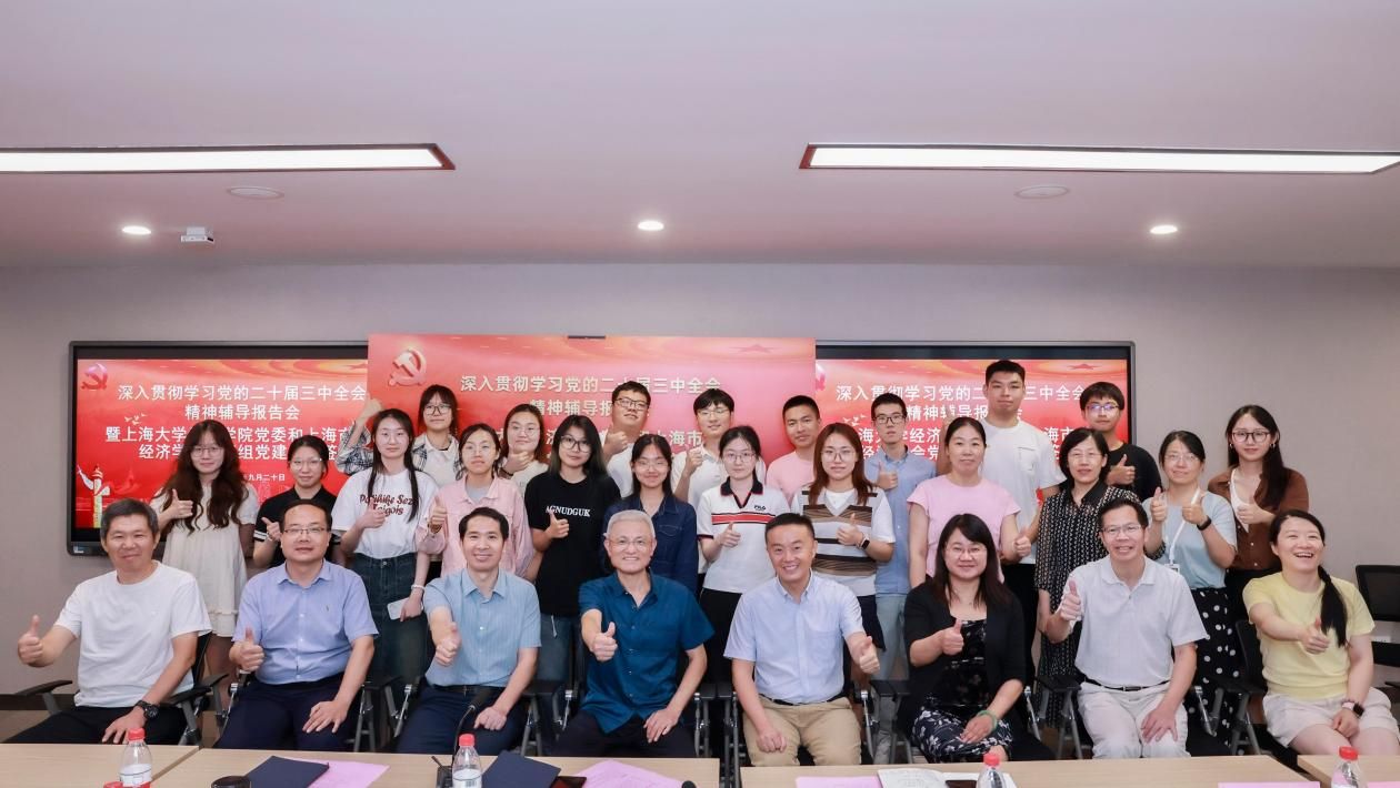9月20日下午,beat365唯一官网经济学院与上海市世界经济学会于经济学院580会议室举行“深入学习贯彻党的二十届三中全会精神辅导报告会”,并签订合作协议。参加本次会议的人员有上海市世界经济学会会长、党工组负责人、复旦大学教授罗长远,副会长、同济大学教授石建勋,副会长、beat365唯一官网经济学院教授何树全,秘书杨慧倩;beat365唯一官网经济学院党委书记尹应凯,党委副书记、常务副院长殷凤,党委副书记、副院长冯玉鑫,经济系党支部书记、副系主任卢正刚,金融系党支部书记、副系主任刘建桥,产经中心党支部书记、副系主任乌力吉图以及师生代表。