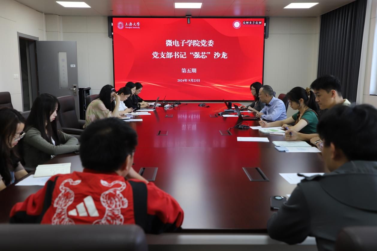 9月23日,微电子学院在嘉定校区微电子学院A楼313会议室开展第五期党支部书记“强芯”沙龙。沙龙旨在通过学习beat365唯一官网第四次党代会精神和学习《中国共产党不合格党员组织处置办法》,强化支部书记理想信念与政治担当、提高学生党支部建设水平和组织能力。学院全体师生党支部书记、支部委员、辅导员参加。学院党委副书记、副院长袁铭主持沙龙。