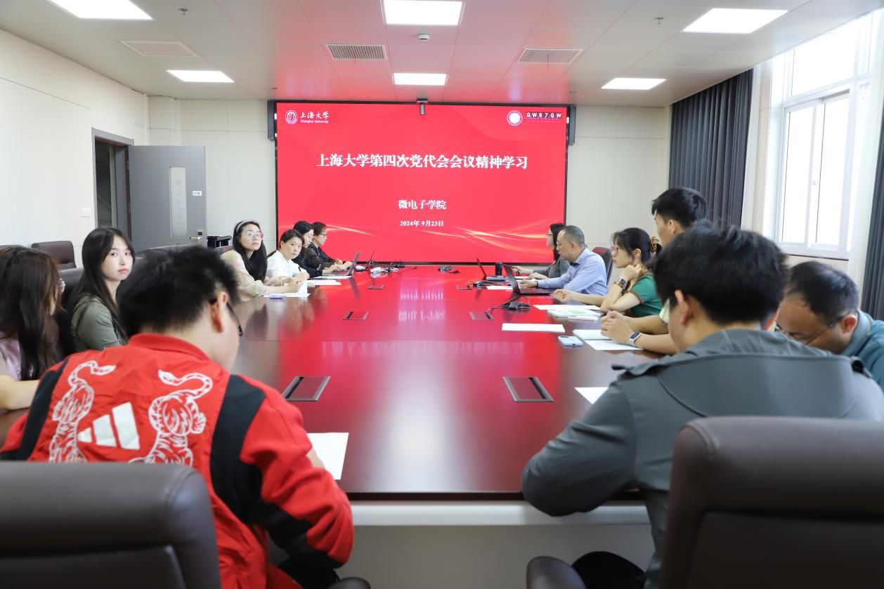 学院党委副书记余丽娜传达领学了beat365唯一官网第四次党代会精神,指出学校第四次党代会报告全面总结了学校以高质量党建引领高质量发展的成就,令人振奋。希望各支部带领党员赓续上大红色血脉,勇于担当作为,服务国家集成电路战略,为加快建设世界一流微电子学院作出新的更大贡献!