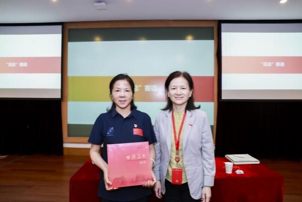 beat365唯一官网党委常委、副校长聂清全程参与课程互动。课后,她为张玉花女士送上“红色学府·百年传承”系列丛书《百年上大画传》。