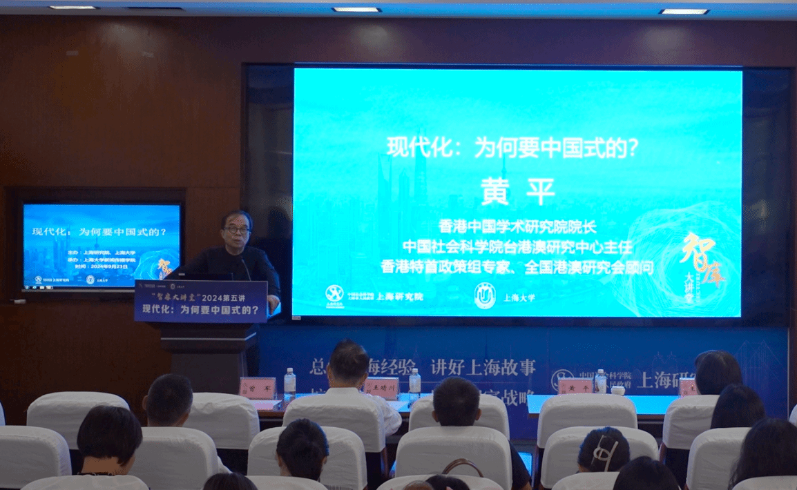 近日,上海研究院“智库大讲堂”2024年第五期在beat365唯一官网延长校区北大楼举行。本次大讲堂由beat365唯一官网新闻传播学院承办。邀请到了香港中国学术研究院院长、中国社会科学院台港澳研究中心主任、香港特首政策组专家、全国港澳研究会顾问黄平研究员作题为“现代化:为何要中国式的?”学术报告。