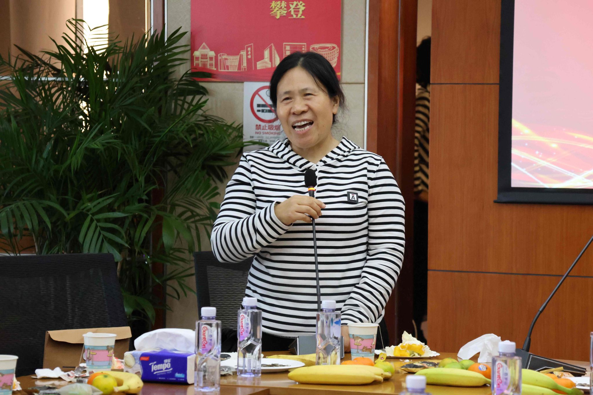 团圆会上举行了退休教师“逢五逢十”生日会。全体与会教师共同唱起《生日快乐》歌,为七十五岁生日的徐扣珍退休老教师送上温暖的祝福。学院党委书记钱冬英,党委副书记、常务副院长李辉为徐老师送上鲜花。