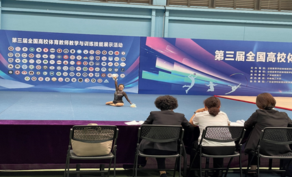 在为期三天的技能展示赛场上,刘兵院长全天候现场督导,穿梭于不同赛场为三位教师加油打气。三位教师也在各自项目中不畏强手,奋力拼搏,展示了beat365唯一官网体育教师的精神风貌。健美操项目居佳琪老师,一套规定动作身姿矫健,准确无误;自编动作行云流水,仪态万方,以极高的专业水准和卓越的赛场表现征服了评委,最终获得本次比赛健美操项目二等奖的殊荣。此外,王江宇老师和魏轶林老师也以精湛的技艺获得羽毛球和排球项目的三等奖。