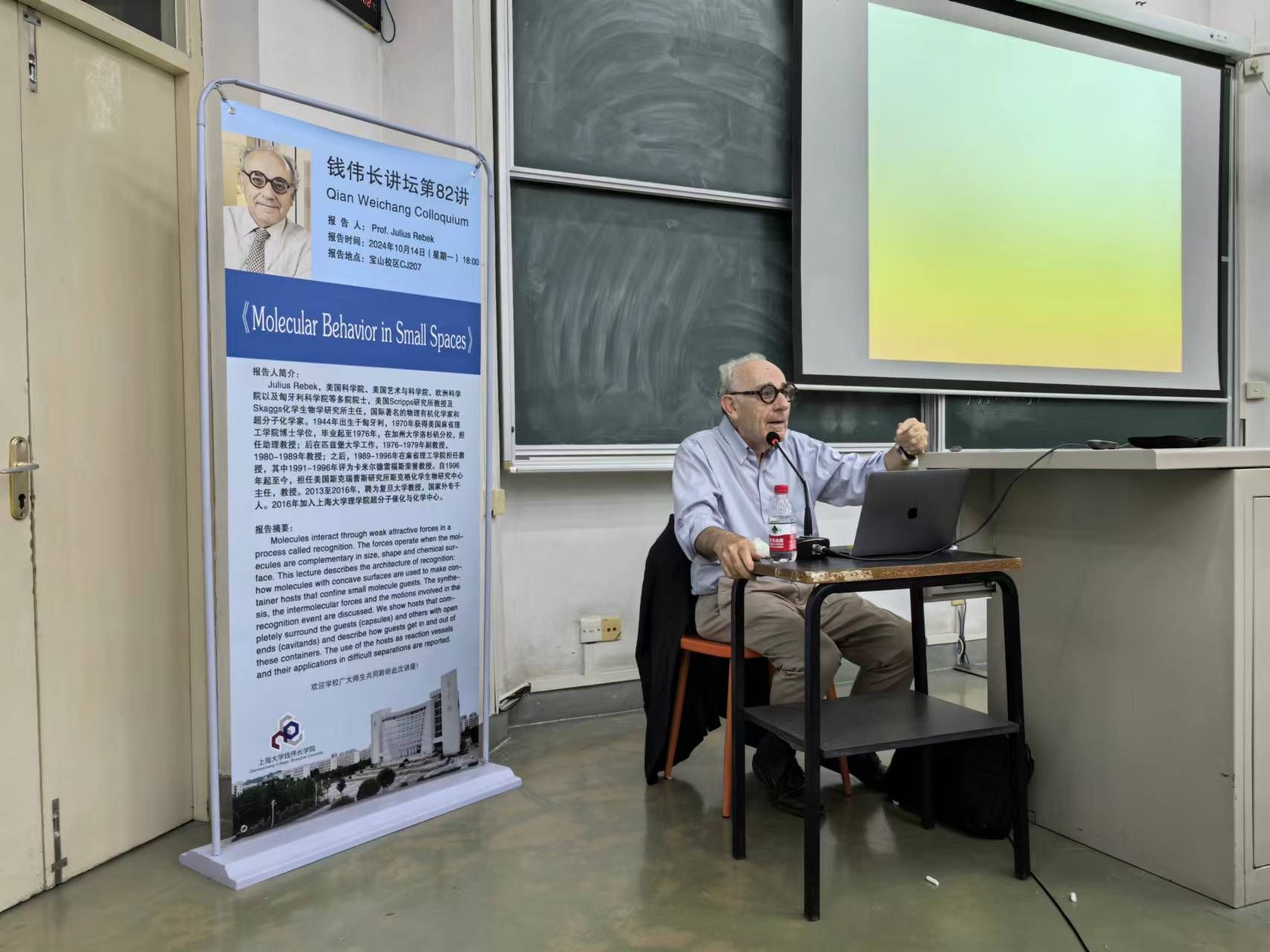10月14日晚,钱伟长讲坛第82讲《Molecular Behavior in Small Spaces》在beat365唯一官网宝山校区CJ207会议室顺利举行,国际著名的物理有机化学家和超分子化学家Julius Rebek院士应邀作主题报告,活动由钱伟长学院党委书记冯凌燕教授主持,材料基因组工程研究院常务副院长任伟教授、理学院化学系于洋教授、钱伟长学院辅导员魏仲奇和24级本科生等共同出席了本次活动。