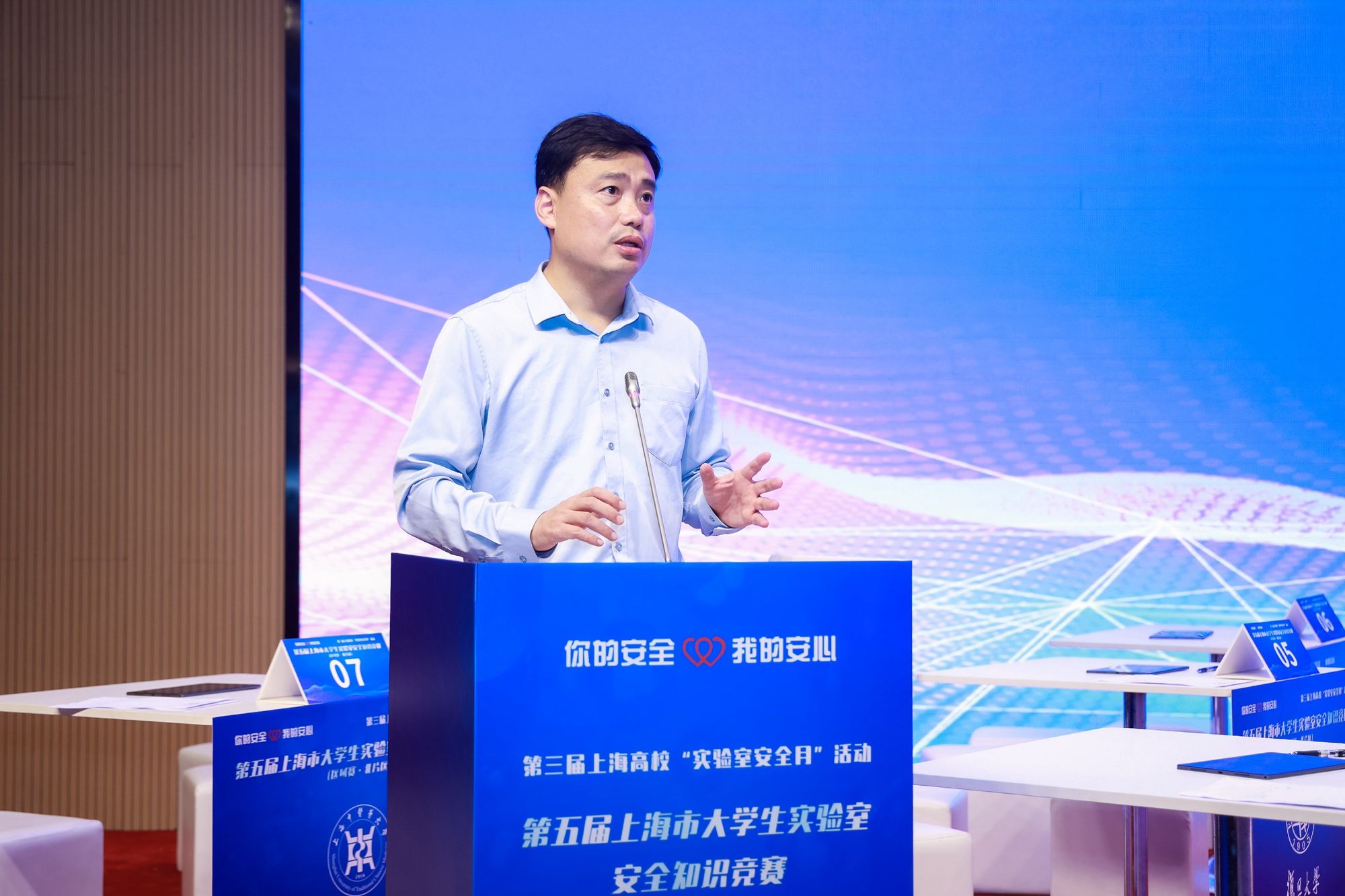 beat365唯一官网党委副书记、副校长胡大伟,上海市教育委员会学校后勤保卫处处长贺小虎,副处级调研员陈宇红,以及来自多所高校的实验室安全相关部门负责人等出席了此次竞赛活动。胡大伟在致辞中热烈欢迎了各位嘉宾、评委和参赛师生,并强调了实验室安全的重要性。他提到,beat365唯一官网始终将实验室安全工作放在首位,持续投入,不断改善实验室安全条件,完善相关制度体系,形成了实验室安全齐抓共管的良好氛围。胡大伟也对未来实验室安全工作提出了期望,并期待赛事活动越办越好,影响力不断扩大,为党和国家培养更多全面发展的社会主义建设者和接班人贡献力量。
