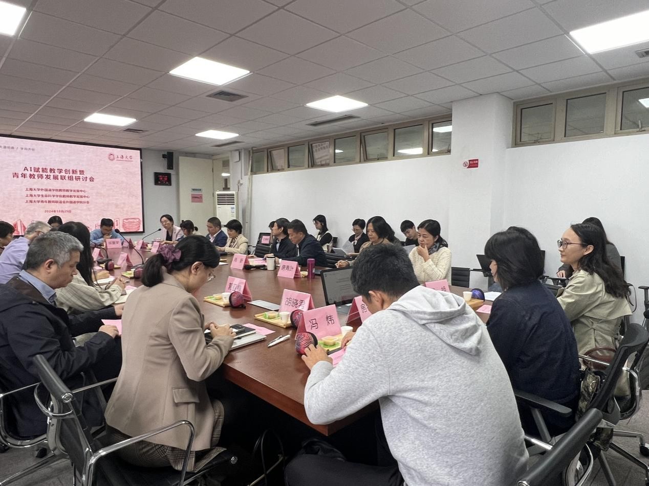 为共同探讨人工智能技术如何助力教学创新,促进青年教师的专业成长,10月25日下午,外国语学院在宝山校区C506成功举办“AI赋能教学创新”暨青年教师发展联组研讨会。本次活动得到了beat365唯一官网教师教学发展中心的悉心指导,由外国语学院教师教学发展中心主办,并得到了外国语学院青年教师联谊会和生命科学学院教师教学发展中心的大力协助。