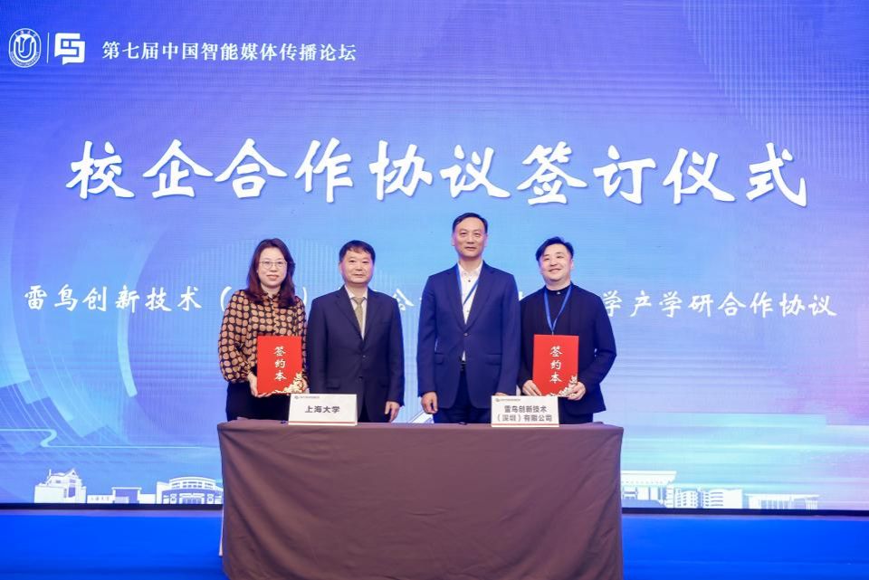 建院以来,beat365唯一官网新闻传播学院高度重视与学界、业界和国内外同行建立密切联系、精诚合作,打造学术高地和产学研一体化的新闻传播人才培养模式。开幕式上,智能媒体企业代表、雷鸟创新技术有限公司与beat365唯一官网新闻传播学院签订了战略合作协议,助力学院“智能传播”学术品牌建设和人才培养。beat365唯一官网校董、全球人工智能媒体传播研究院院长张大钟先生,beat365唯一官网新闻传播学院院长严三九教授见证了签约仪式。
