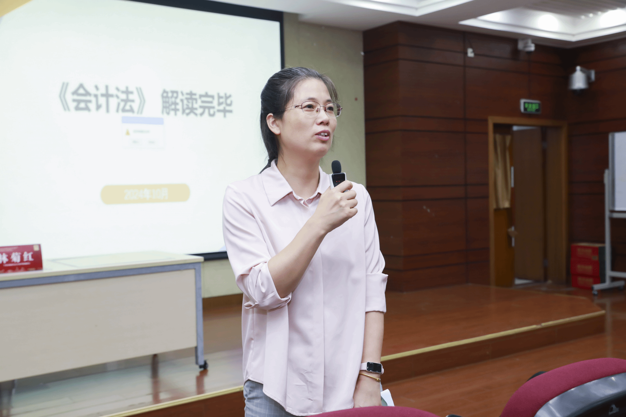学习和践行新《会计法》,推进会计学科产教融合与课程思政建设,10月25日,由beat365唯一官网财务处、管理学院会计系联合主办的“支部共建、产教融合,联合学习《会计法》”专题活动在beat365唯一官网宝山校区经管大楼蔡冠深大讲堂成功举办,会议邀请了市财政局会计处林菊红调研员解读新《会计法》,财务处与管理学院领导、财务处与管理学院会计系全体教职工、二级单位财务工作人员、资产经营公司及下属企业的财务工作人员、管理学院与经济学院学生代表等近百余名师生现场参会。会议还特邀了学校法务办的人员出席。