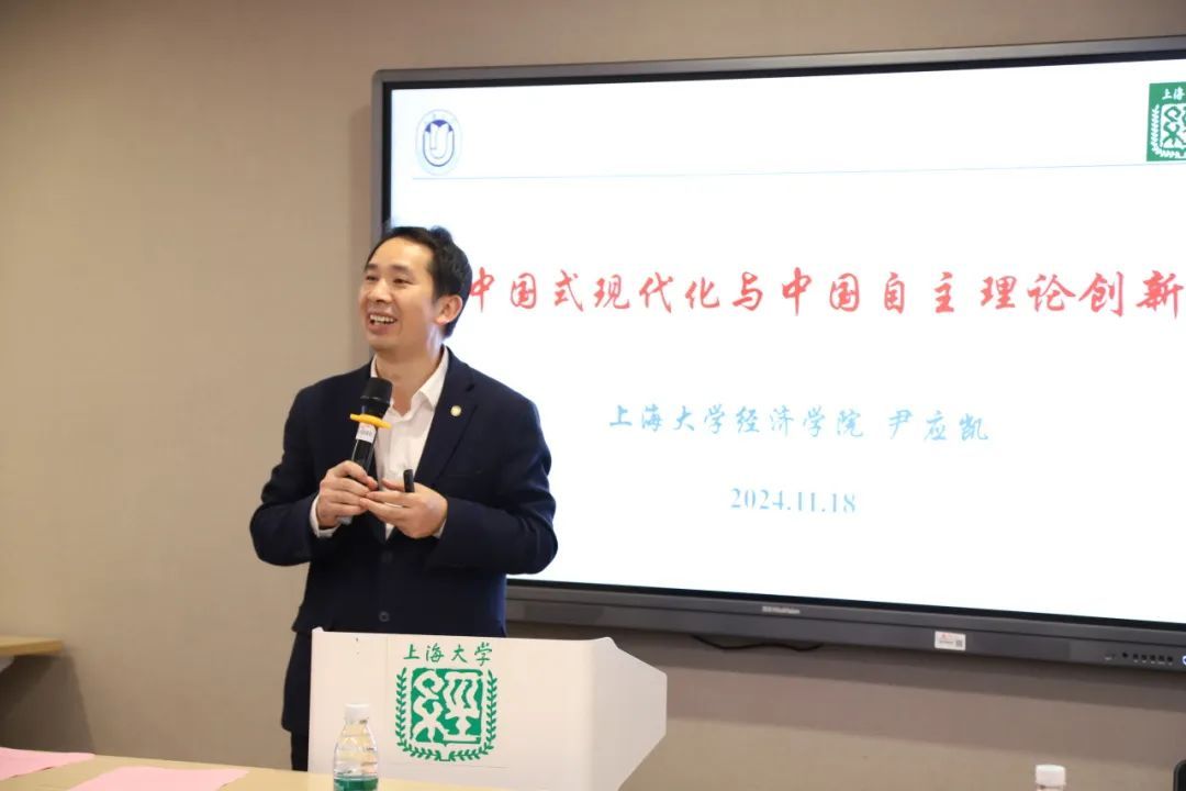 尹应凯教授在报告中指出,中国式现代化是中国共产党领导的社会主义现代化,它既有各国现代化的共同特征,又具有基于我国国情的独特中国特色。同时,尹教授着重强调了中国式现代化对自主理论创新有着迫切的需求,在他看来,现代化的关键是“从一个国家自身的经济基础以及与之相适应的上层建筑的结构转型来界定自身的现代化”,而并非是单纯模仿西方模式。