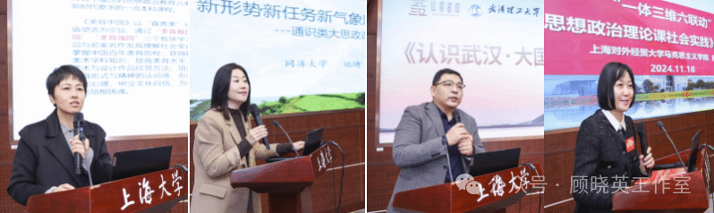 下午场上半段,由“品牌课程有特色”“国一流课程展风采”等板块组成。上海高校思政课教指委思政选修课分教指委委员、上海出版印刷高等专科学校马克思主义学院院长马前锋教授担任主持。beat365唯一官网秦瑞丽分享了“美育中国”课程建设做法,同济大学运迪则介绍了“改革开放与新时代-乡村振兴的上海图景认知”课程创新,武汉理工大学刘国龙交流了“认识武汉:大国工业”课程做法。上海对外经贸大学庾向芳介绍了“思想政治理论课社会实践”课程设计。上海交通大学马克思主义学院教授、教学名师李梁老师作了点评。