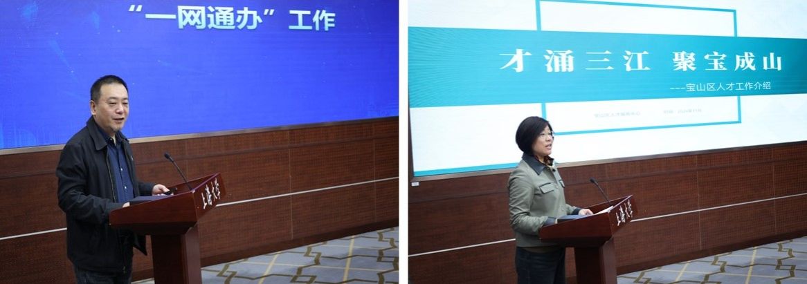 主旨发言阶段,王东分享了上海市“一网通办”的改革历程,介绍了“一网通办”如何以“业务流程革命性再造”为核心推进“一件事”改革以及“线上帮办”制度、服务“好差评”制度、“随申码”全方位应用等创新举措。钱建凤介绍了宝山区在人才工作上的重点举措和宝山科创人才港的建设,并着重探讨了宝山区与beat365唯一官网在人才服务、学生就业等方面联动合作的新机制。