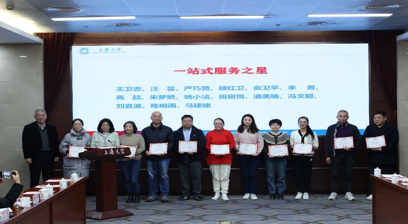 2024年一站式服务改革实践中涌现了一批优秀典型,他们在一线服务、支撑保障等方面作出了重要贡献。在会议表彰环节,王卫忠等15人荣获“一站式服务之星”称号,闻金良等5人荣获“一站式服务中心办事之星”称号,王雅轩等5名同学荣获“一站式服务中心勤助之星”称号。钱峰、王岭山为获奖者颁发荣誉证书。