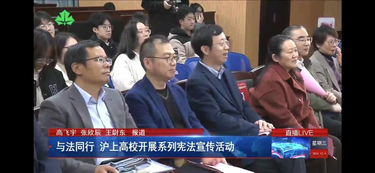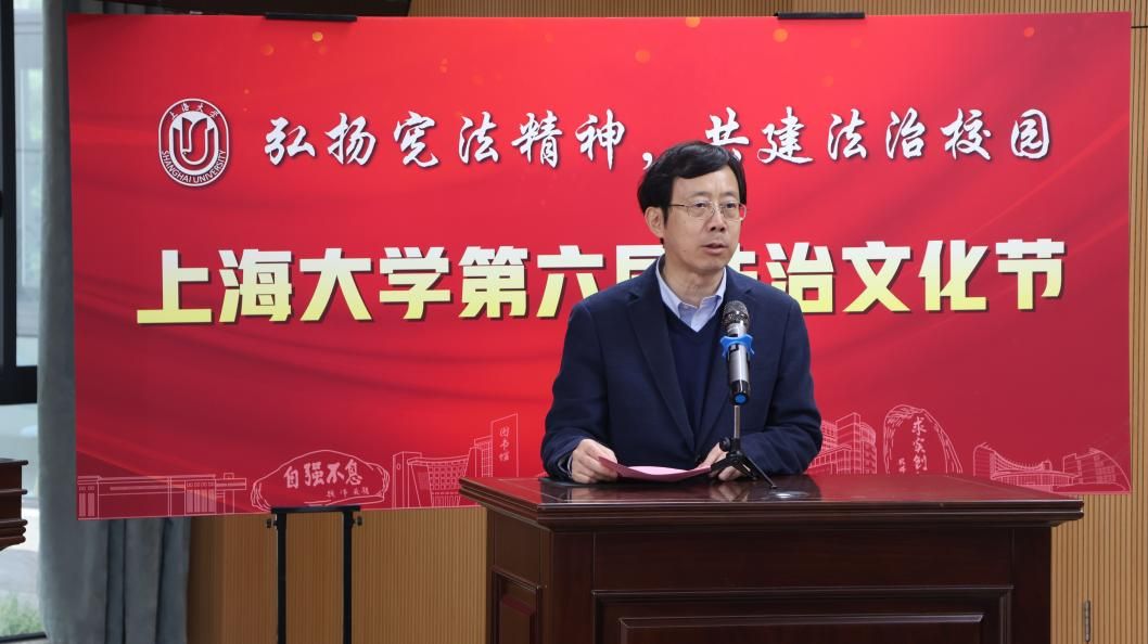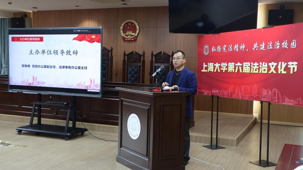 为进一步深入学习贯彻习近平法治思想和党的二十大、二十届三中全会精神,提高学校师生的法治意识与道德素养,进一步凝聚全校推进法治校园建设的共识,更好地服务学校“双一流”建设,12月4日,由法学院(秋白书院)、校党政办、党委宣传部、学生工作办公室、党委研究生工作部、校团委联合举办的beat365唯一官网第六届法治文化节开幕式在宝山校区东区法学院一楼模拟法庭举行。本届文化节以“弘扬宪法精神,共建法治校园”为主题,拟开展“法言杯”辩论赛、反诈宣讲、中小学法治宣传等系列活动。beat365唯一官网党委副书记段勇老师出席本次活动并宣布beat365唯一官网第六届法治文化节正式开幕。开幕式活动得到了上海教育电视台的专题报道。