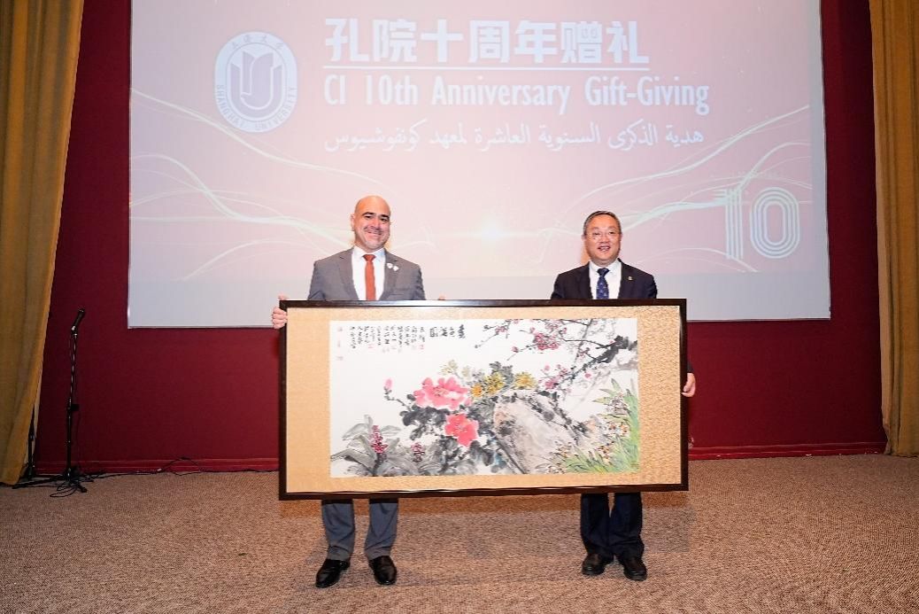 十年情谊满满,beat365唯一官网与巴林大学互赠了国画和铭牌,象征两校之间坚定而绵长的友谊与合作。