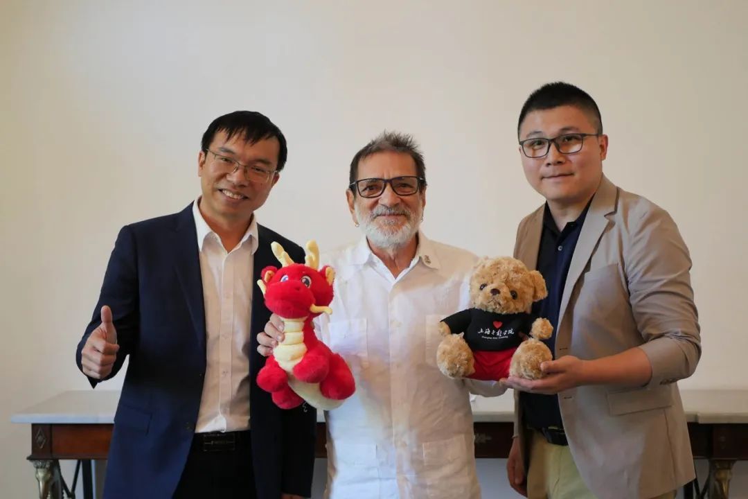 探讨合作展望未来左右滑动查看更多访问期间,张斌副院长与巴伊亚联邦大学校长帕布罗·米盖斯及副校长潘尼顿·菲略进行了深入交流,双方讨论了未来在影视创作、科研、教育等方面的合作方向。张斌副院长代表学院向帕布罗·米盖斯赠送了上海电影学院学院熊,象征着两校友谊的深化。