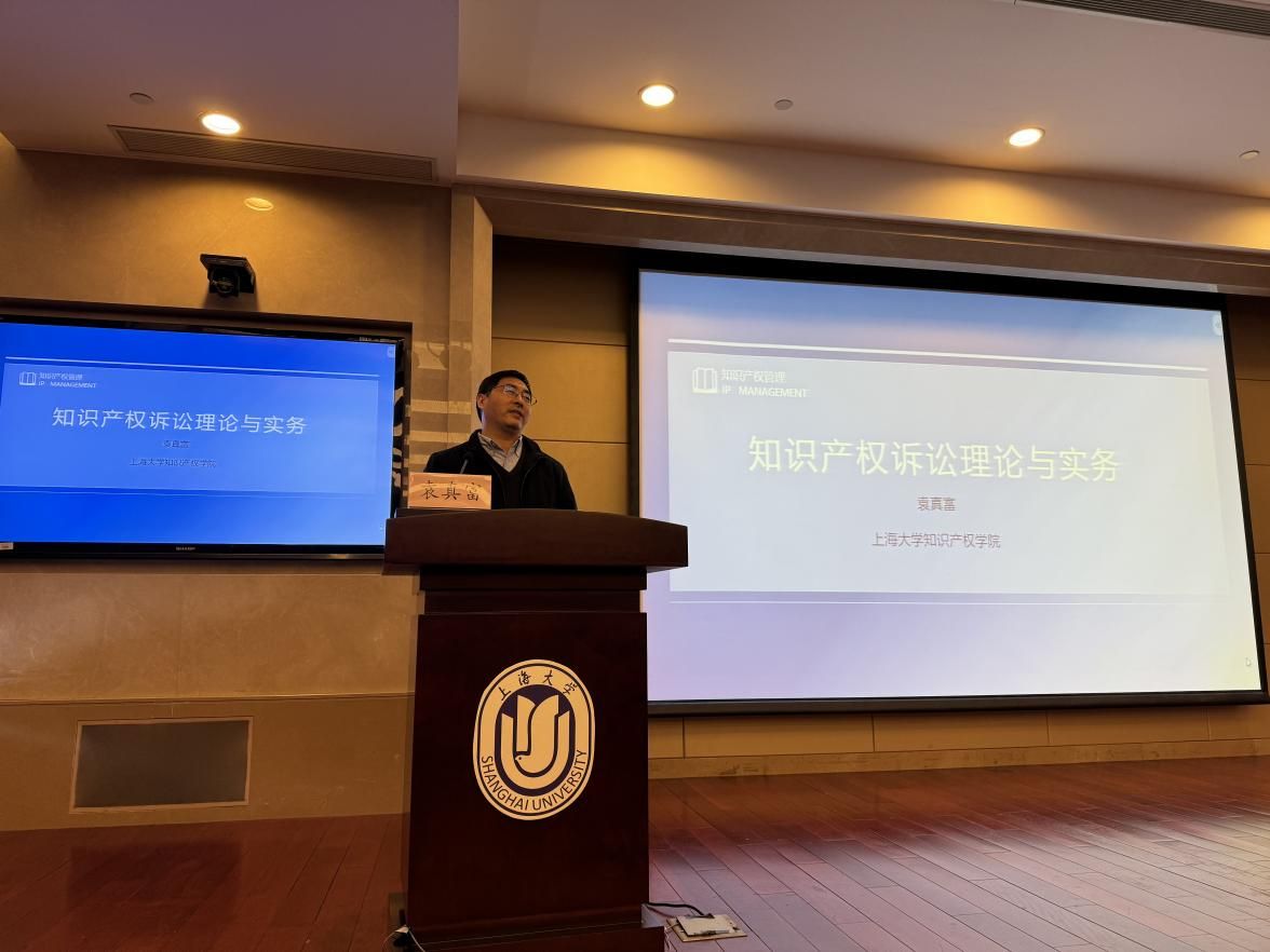 beat365唯一官网法学院副院长、知识产权学院院长袁真富进行“知识产权诉讼理论与实务”专题授课。
