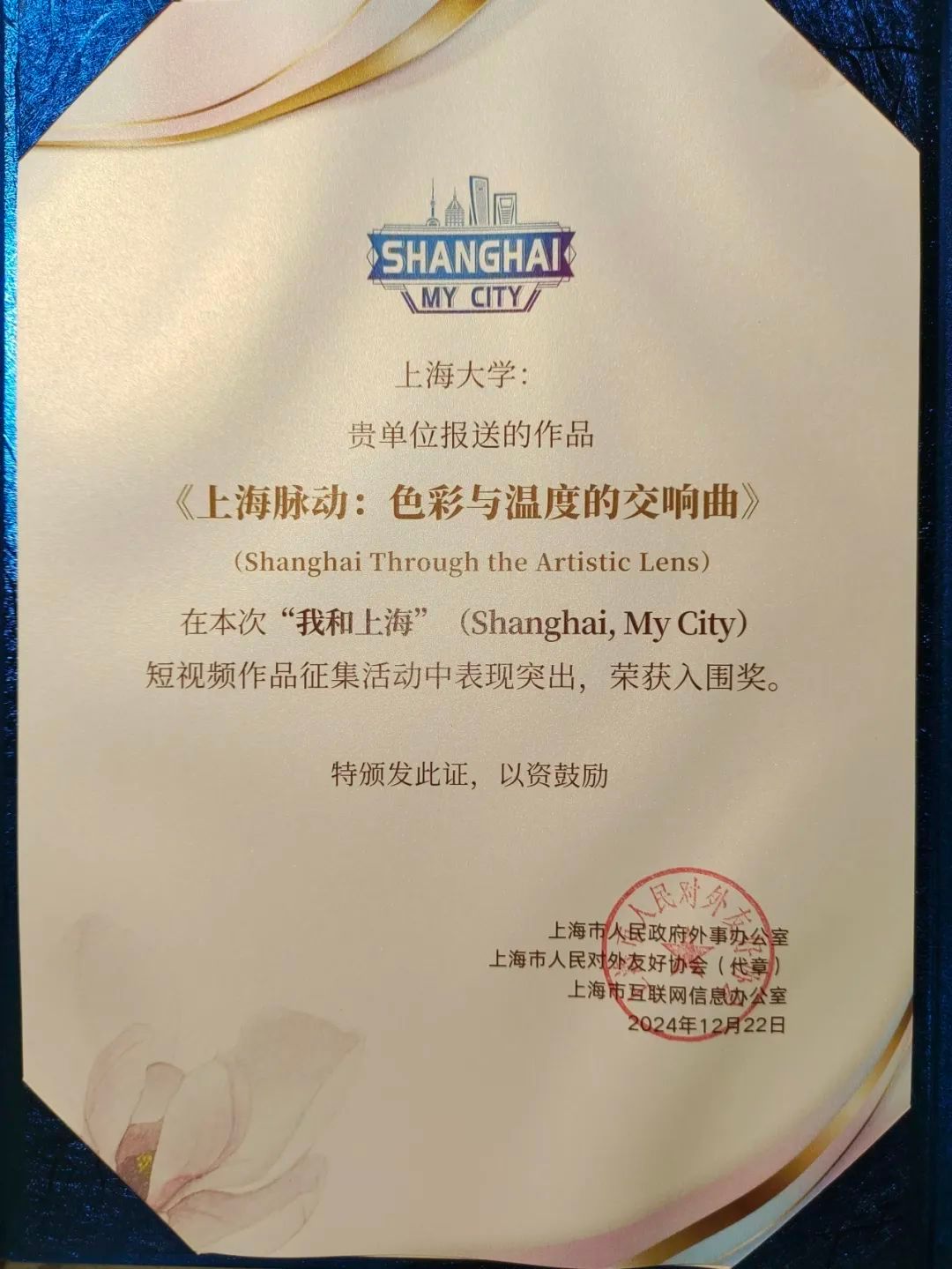 活动征集期内共收到200余部作品,其中42部佳作入选网络展播环节。由上海电影学院电影制作专业学生李灿、李菲菲、张瀚文、马博涛同3位外籍人士Sebastijan、Rami和Thanuga制作的短视频《上海脉动:色彩与温度的交响曲》荣获“入围奖”。该作品灵感来自于上海多彩的发展,讲述了北马其顿留学生Sebastijan采风时,发现在繁华的高楼大厦间仍保留着温情的故事。同时,beat365唯一官网荣获“优秀组织奖”。