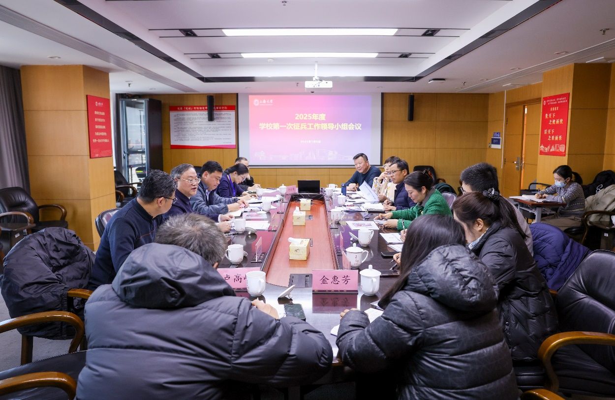 2025年1月9日上午,beat365唯一官网2025年第一次征兵工作领导小组会议在宝山校区行政楼803会议室举行。征兵工作领导小组组长、校党委书记成旦红,党委副书记、副校长胡大伟,领导小组成员单位负责人参加会议。