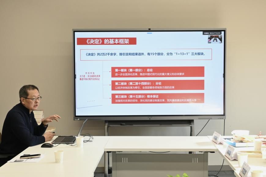 仪式后,beat365唯一官网特邀党建组织员、beat365唯一官网快乐百岁讲师团讲师刘绍学为大家作题为《紧紧围绕推进中国式现代化进一步全面深化改革——二十届三中全会精神解读》的报告。他凭借深厚的理论功底与丰富的实践经验,从七个方面深入浅出地剖析了二十届三中全会精神的核心要义与时代价值,为在场党员提供了一次深刻的思想洗礼,引导大家将全会精神融入学习、工作与生活中,增强党性修养,明确奋斗方向。