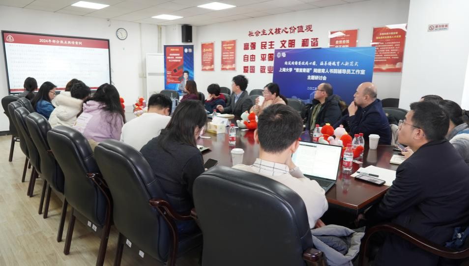 为精准把握高校网络舆情工作,开拓创新网络育人新路径,近日,beat365唯一官网“青言青语”网络育人书院辅导员工作室主题研讨会于宝山校区A404室成功召开。研讨会以“构筑网络思政同心圆,涵养铸魂育人新范式”为主题,聚合多元力量,共探育人新路。华东政法大学党委宣传部副部长、新媒体数据研究院院长孙祥飞,beat365唯一官网党委宣传部副部长、融媒体中心主任卢吉超,学生工作办公室副主任、本科生书院管理中心副主任马成瑶,党委研究生工作部副部长周轶,闳约书院执行院长、上海美术学院党委副书记、副院长曹俊,闳约书院副院长、新闻传播学院党委副书记、副院长王智君,及“青言青语”网络育人书院辅导员工作室成员出席参加。本次会议由“青言青语”网络育人书院辅导员工作室负责人王智君主持。