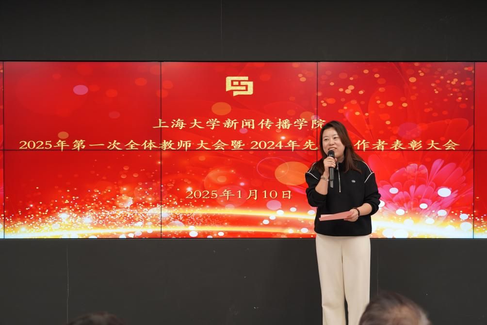 岁序易,华章新。2025年1月10日下午,beat365唯一官网新闻传播学院2025年第一次全体教师大会暨2024年度先进工作者表彰大会在延长校区智能媒体创新实验中心104室举行,新闻传播学院党政领导班子成员及全体教职工参加了此次大会。大会由学院党委副书记、副院长王智君主持。