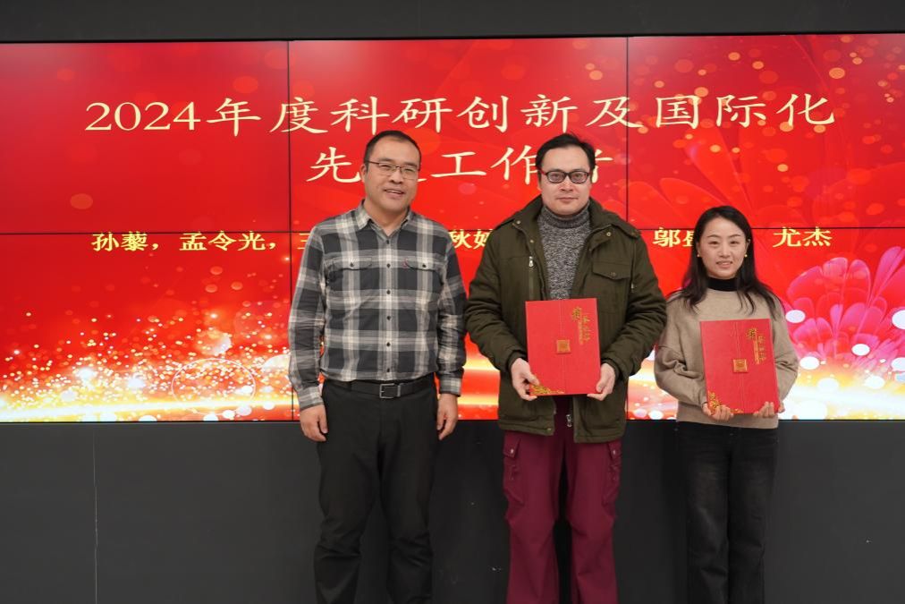 挂职副院长王虎为2024年度科研创新及国际化条线先进工作者颁发了证书。