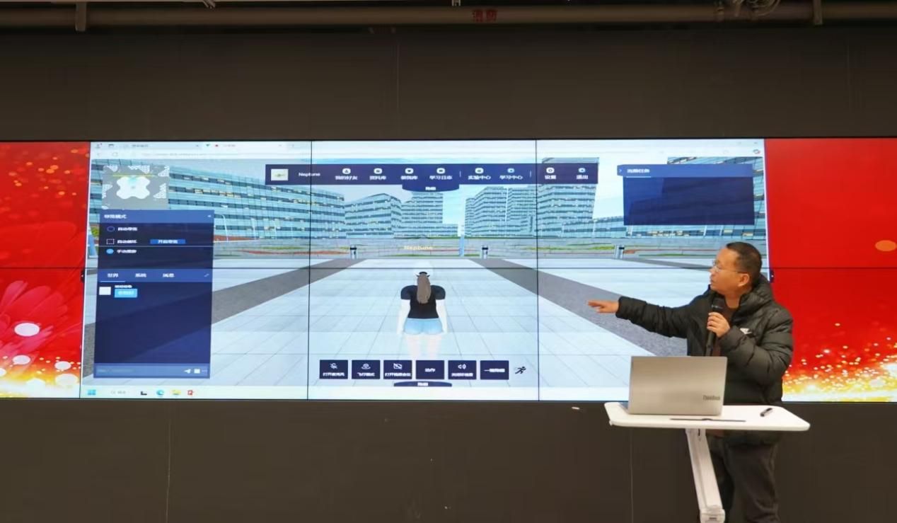 新闻传播学院副教授海阔老师详细介绍了进博会元宇宙课程系统的搭建过程与特点,强调了其国家级影响力和涉及学院所有专业的综合性。该系统具有数字孪生、元宇宙设备支持、互动性、虚拟共创、创业开放性和素材共享性六大特点。