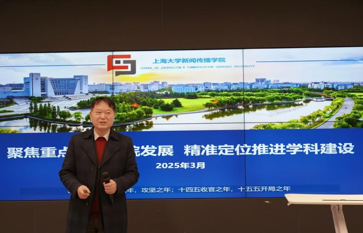 新闻传播学院院长严三九以《聚焦重点引领学院发展 精准定位推进学科建设》为主题,介绍了近年来学院学科发展的情况及取得的亮点成绩,报告从学院发展整体规划和学科发展整体布局两个方面展开。2019年,学院在原有的基础上,布局了马克思主义新闻观和智能传播的两个重点方向,尤其是智能传播从整体布局、重点突破、与标杆企业合作、与主流媒体合作等,积极打造智能传播人才培养和科学研究重镇,形成智能传播的优势和特色。严三九院长从学期制优化改革、十五五规划启动、第六轮学科评估启动、辅楼工作推进、非全日制专硕工作、召开第二届本科教育大会、召开第一届研究生教育大会、召开第二届科研创新大会、申报教育部重点实验室等九个方面部署了2025年度的行政重点工作。