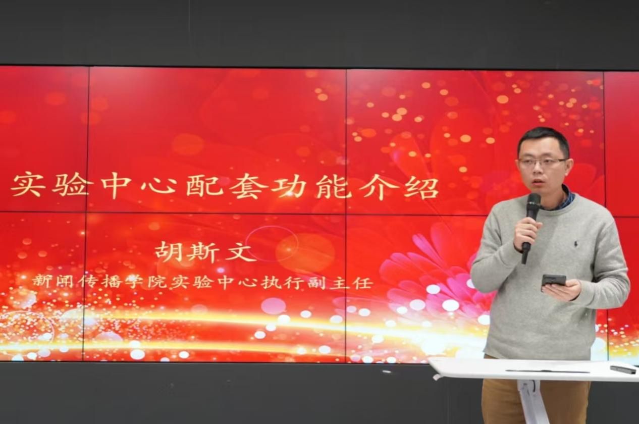 会议伊始,为了更好地服务于学院教师们的教学和科研工作,新闻传播学院实验中心副主任(主持工作)胡斯文介绍了实验中心的全面建设情况和相应的配套支持系统。目前,实验中心已经建立了15个实验室,涵盖多功能空间、基础实验区和专业实验空间。尤其是,当下实验中心在人工智能领域加大投入,已构建了元宇宙、VR软硬件平台,以满足师生教学、科研和学习的需求,并且欢迎全院教师积极参与,建言献策。