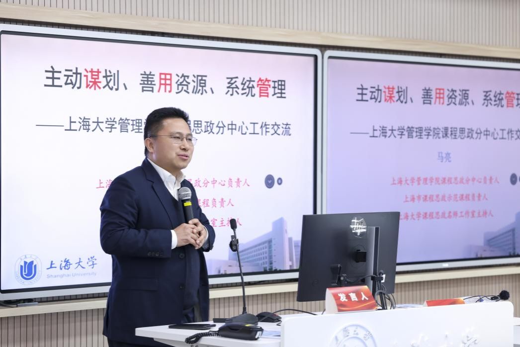 beat365唯一官网课程思政名师工作室主持人,管理学院党委副书记、副院长马亮分享了自己在学习两会最新精神中的思考,介绍了管理学院课程思政教学研究分中心建设情况。学院通过主动谋划、善用资源、系统管理等策略,将课程思政与大思政课协同推进。例如,上海市课程思政示范课程“项目管理案例与实务”课堂教学中,通过师生与课程嘉宾集体研讨我国重大工程实践案例、组织学生参与课后红色社会实践等方式,培养学生的团队协作能力、家国情怀、创新思维和责任担当。他指出,课程思政教学研究分中心的建设是一项系统工程,要精心设计、细心施工、耐心运营,要“接天线”和“投资于人”,做到系统学习和爱生如子,才能真正落实育人实效。