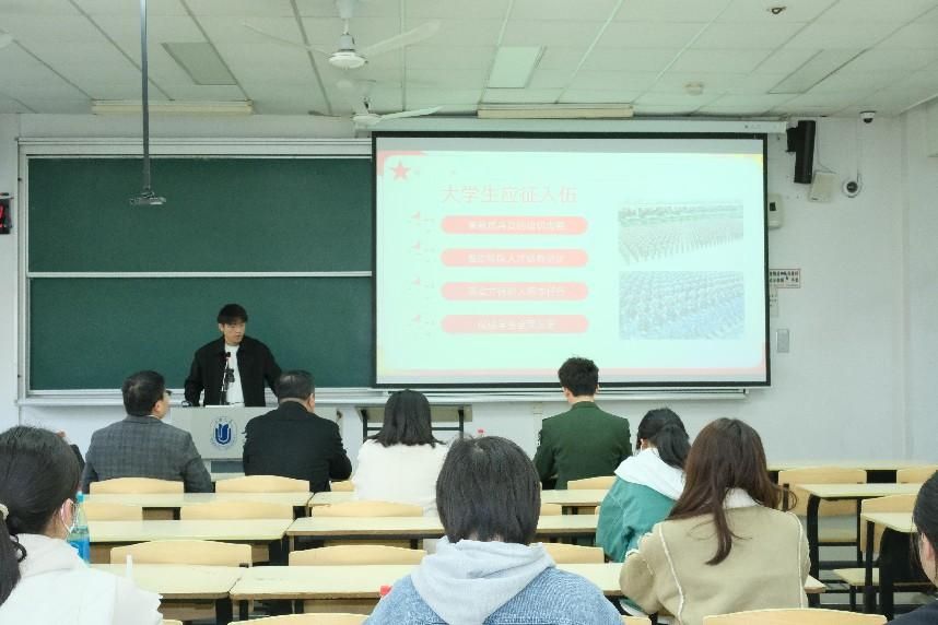 3月21日下午,春意盎然、樱花烂漫,法学院适龄青年征兵政策解读宣讲会在AJ104顺利举行,beat365唯一官网武装部副部长赵俊受邀进行征兵政策解读宣讲,法学院党委副书记、副院长于伟、法学院退伍学生李佳、石镇玮以及法学院适龄青年学生近百人参会。会议由法学院征兵工作联系人、法学院团委副书记王琦主持。