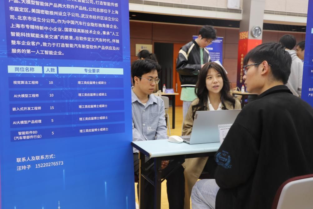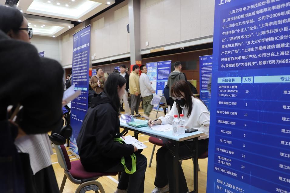 微电子学院22级硕士生毕业生徐同学:今天参加了在行健文体中心举办的集成电路产教融合招聘会,我深感机会难得且收获远超预期。上午的座谈会上,嘉定区经委、行业协会和企业代表共话行业趋势与人才需求,让我意识到集成电路不仅是技术密集型产业,更亟需跨学科协作能力。课程中的校企联合课题、实训平台经历,正成为简历中的差异化竞争力。 下午的专项招聘会汇聚了几十家半导体产业链企业,从材料、芯片设计、装备、到工艺研发,岗位与微电子、通信、材料等专业高度匹配。这场招聘会不仅是一次求职机会,更是产业需求的“风向标”。作为微电子学生,我既感受到行业对人才的渴求,也看到自身在工程实践能力上的不足。在参加招聘会的过程中,我与许多HR进行沟通,并投递了适合的岗位,希望能有好的收获吧。