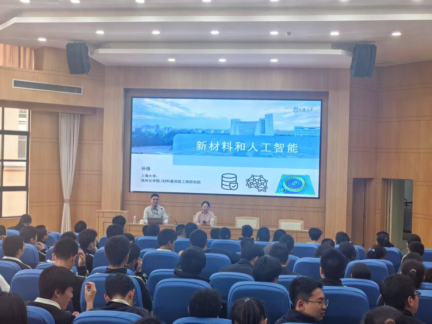 在讲座中,孙强教授以渊博的学识和生动的讲解,带领同学们穿越人类文明的发展长河。他指出,从远古的石器时代到青铜、铁器时代,再到如今的硅片、碳纤维等高科技材料,人类的发展史本质上是一部材料的进化史。孙教授深入浅出地阐述了材料学研究与人工智能的概念,强调了基础学科在构建物质世界中的关键作用,并详细介绍了新时代下材料研发的新范式,为同学们揭开了科技前沿的神秘面纱。