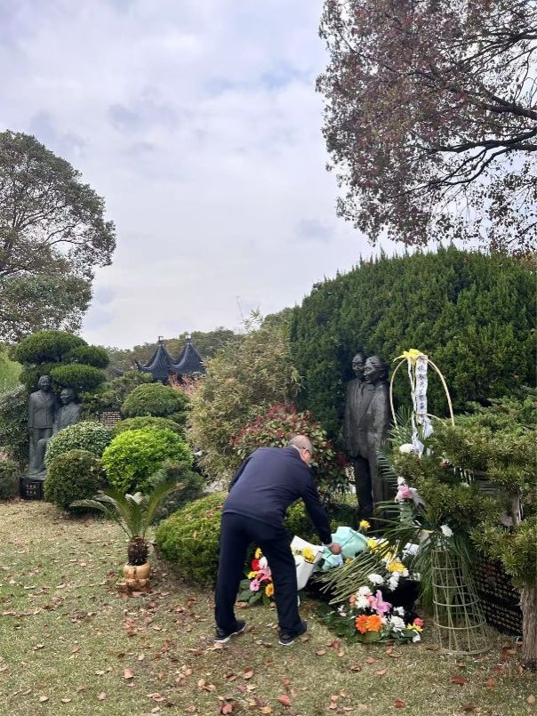 祭扫活动中,教师们向钱先生夫妇铜像鞠躬、献花,并擦拭铜像及墓碑、清理周边环境,大家纷纷表达深深的怀念和浓浓的哀思。