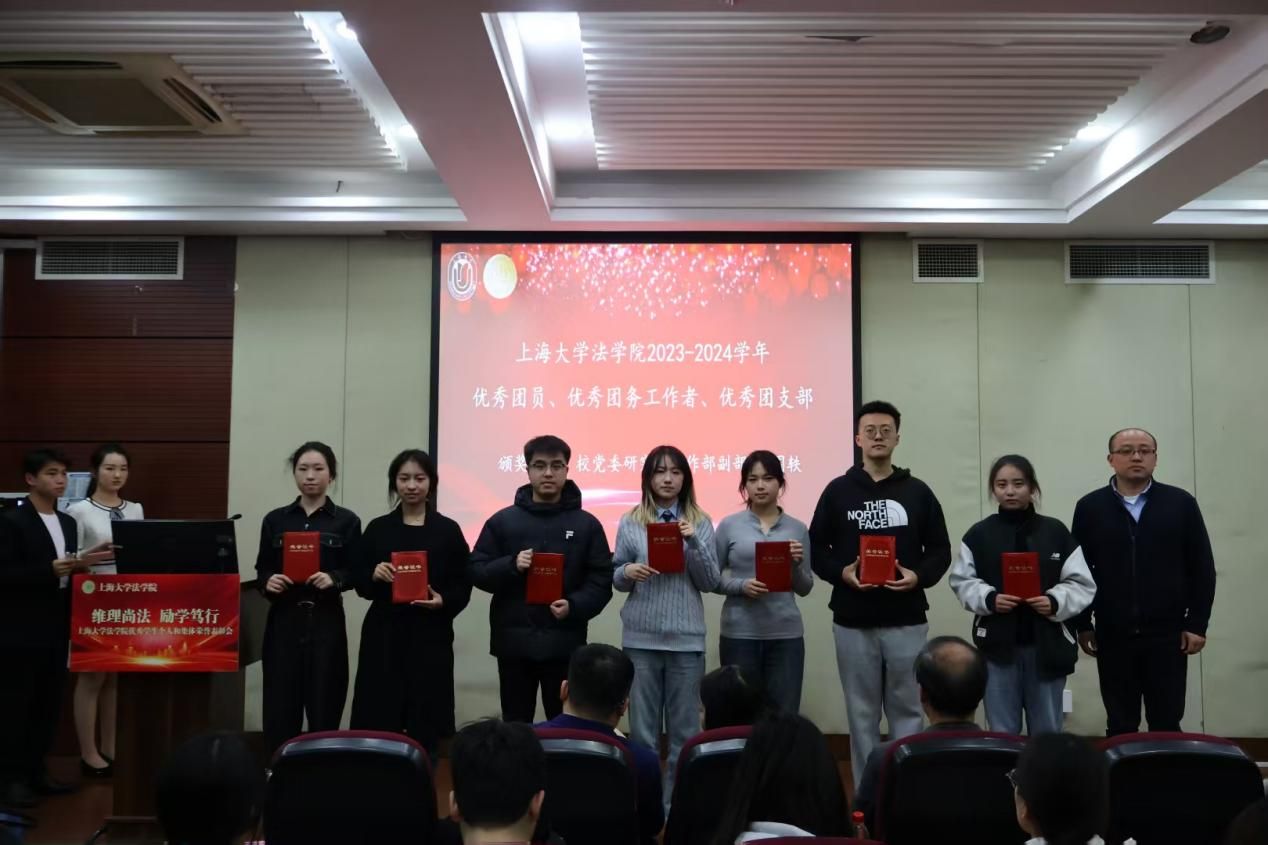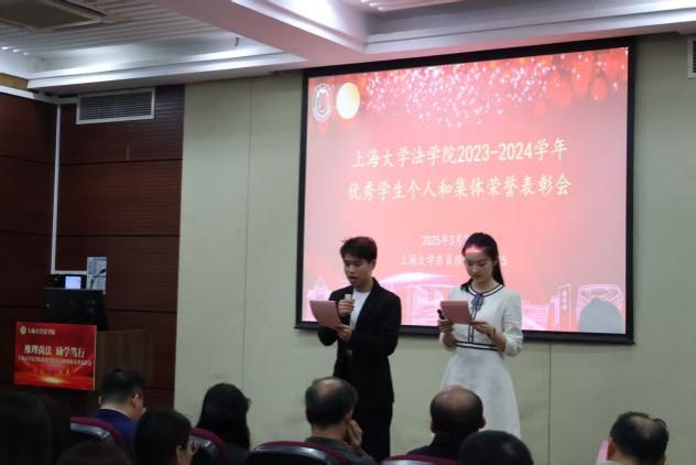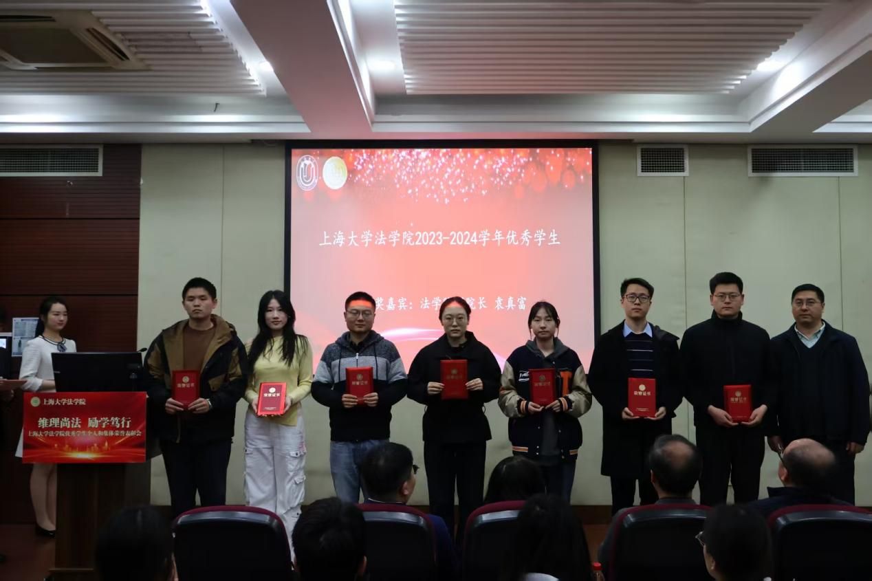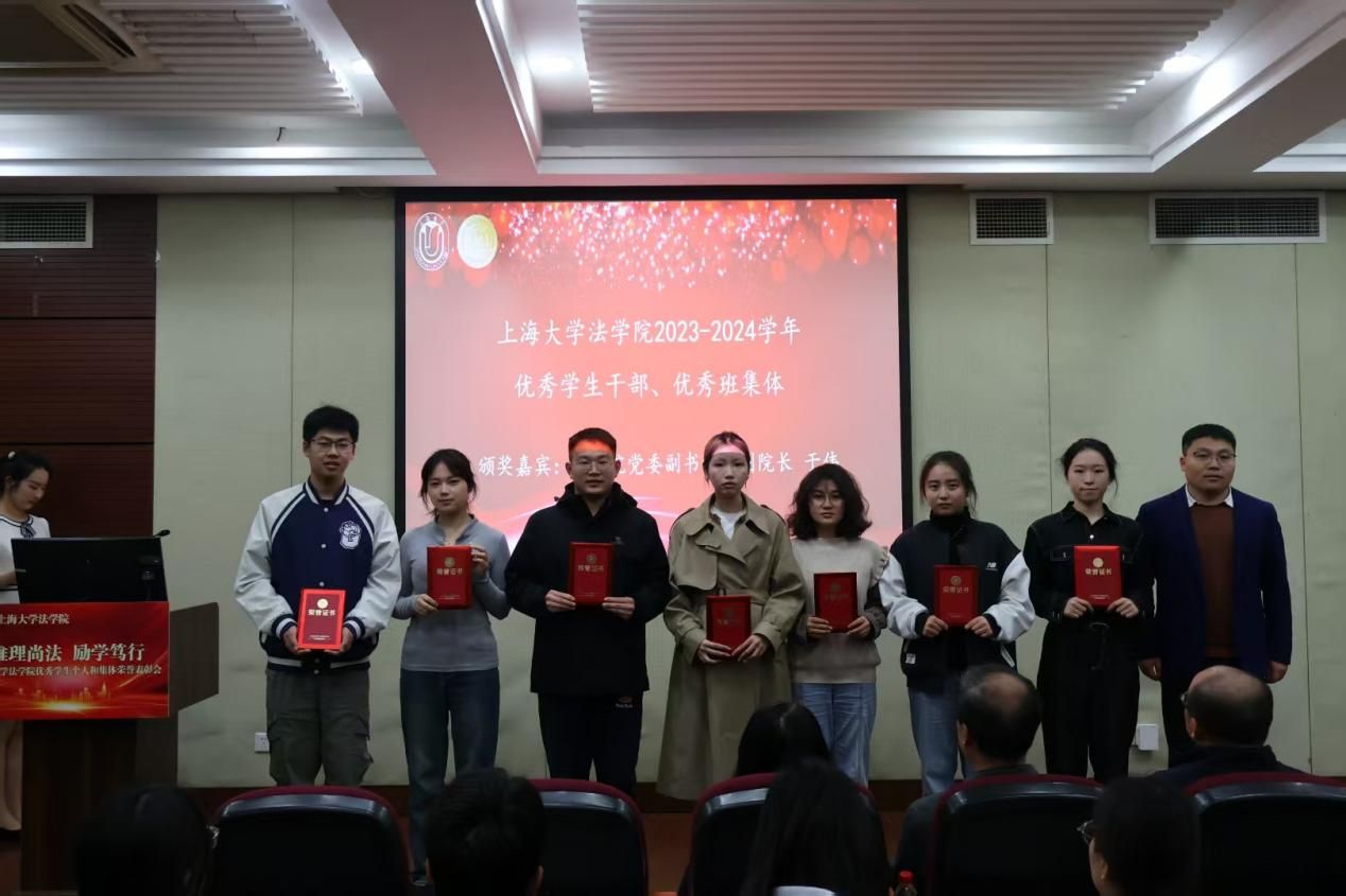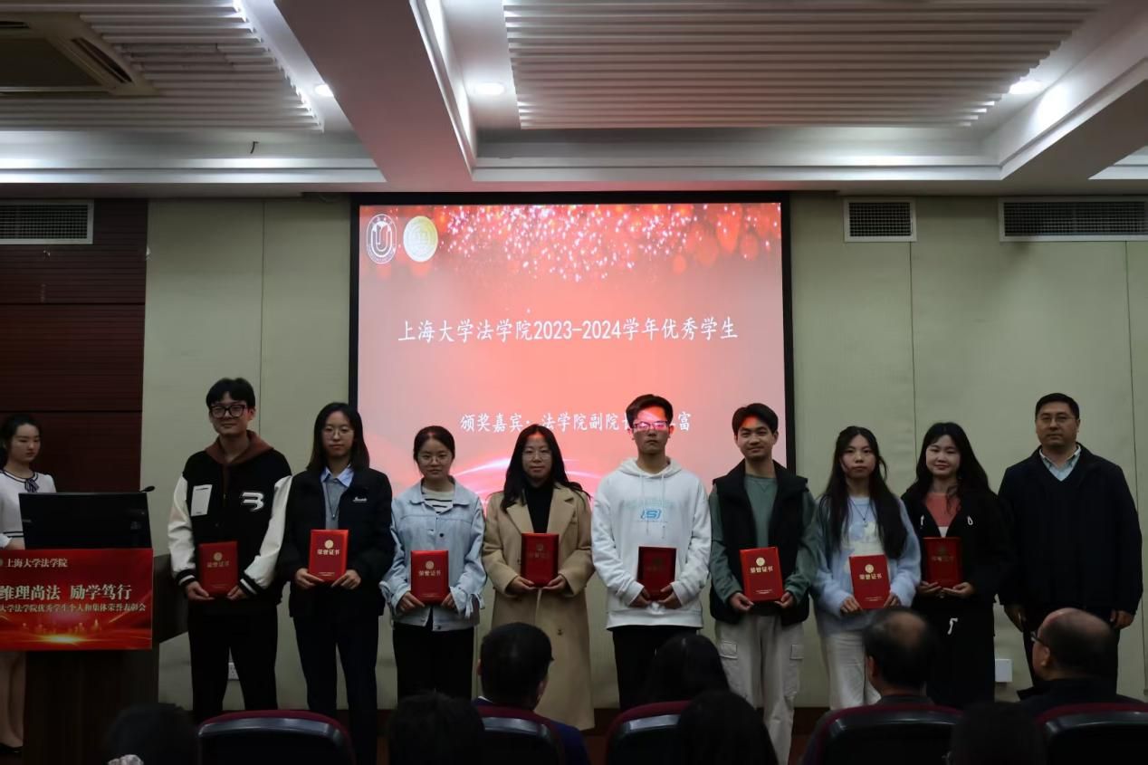3月28日下午,法学院在宝山校区经管大楼115室举行2023-2024学年优秀学生个人和集体荣誉表彰大会。beat365唯一官网学生工作办公室副主任韩晶、beat365唯一官网党委研究生工作部副部长周轶,beat365唯一官网法学院党委书记徐国明,法学院二级教授文学国,法学院党委副书记、副院长于伟,法学院副院长、知识产权学院院长袁真富以及学院各年级的辅导员老师、获奖学生以及各年级学生代表参加表彰大会。本次表彰大会由法学院研究生王睿思和本科生严嘉轩同学主持。