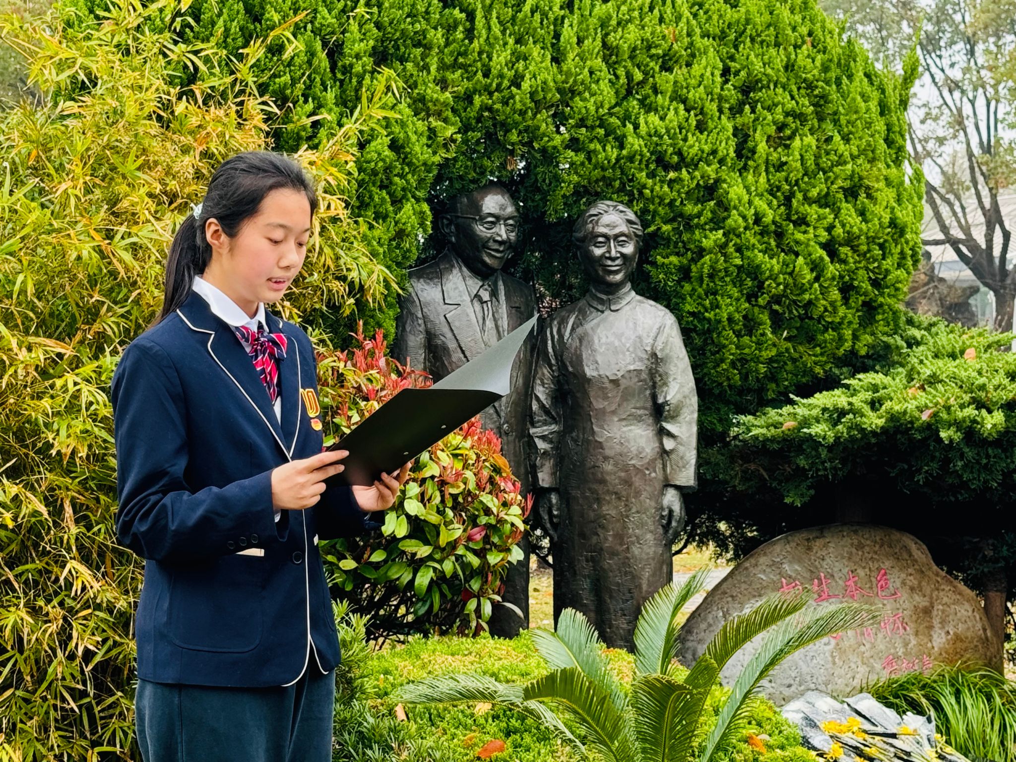 上大附中2024级伟长班的班长韩婧文同学以《传承伟长精神,争做时代新人》为题发言,她表示,钱伟长先生为上附中亲笔题写的“开拓创新乐育才”是历代附中人践行的理念,她所在的2024级伟长班更是以“伟长精神”为班级文化内核的班集体,每位同学都将践行伟长精神,并融入个人成长与班集体文化建设中,追随钱伟长先生的步伐,为中华民族的伟大复兴奉献青春力量。