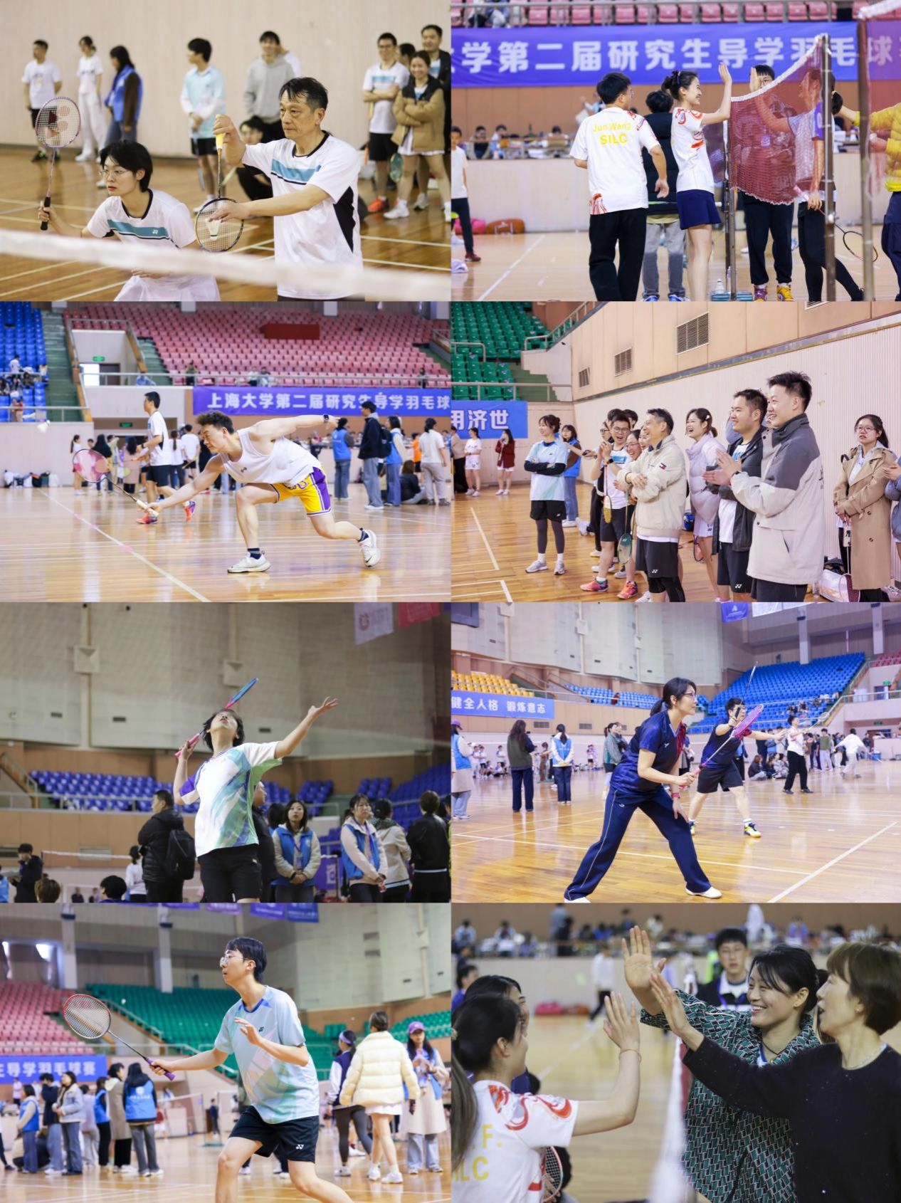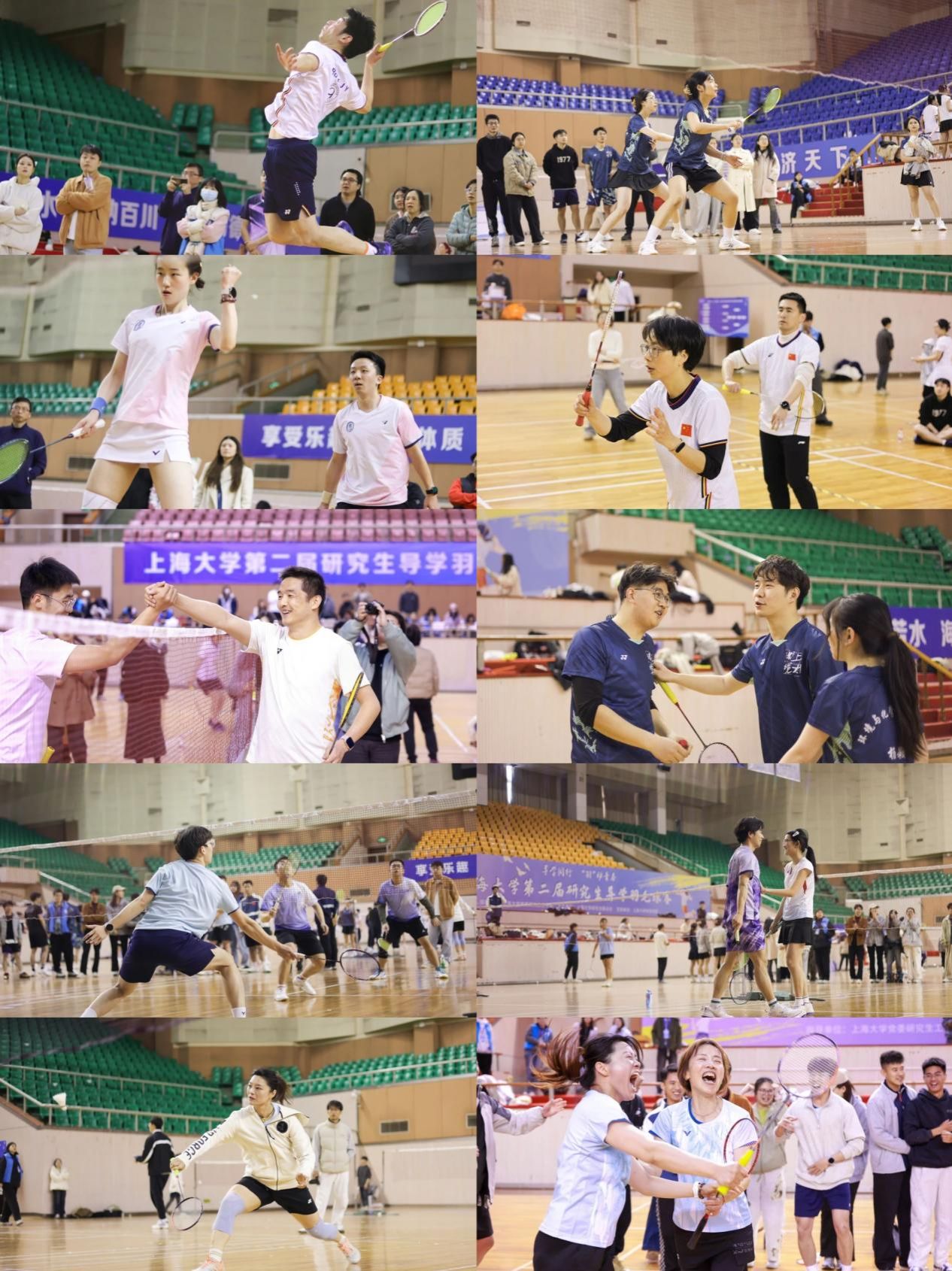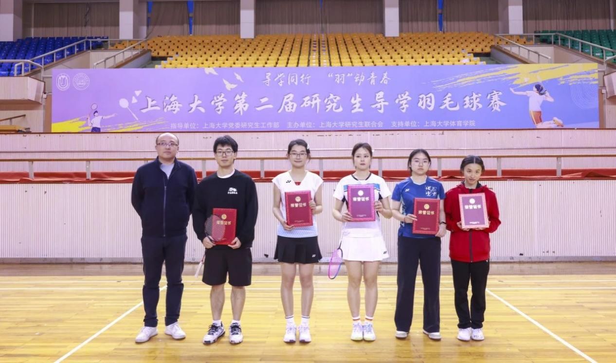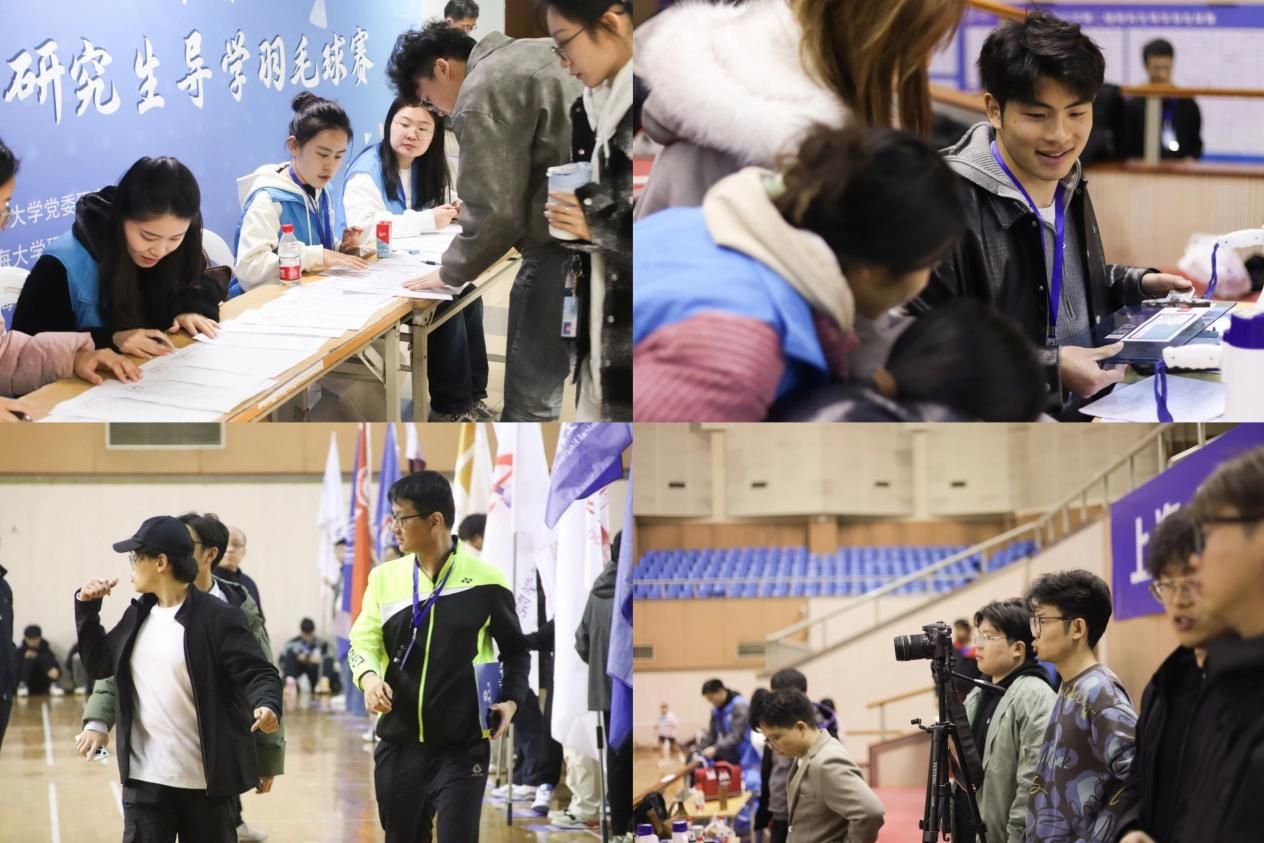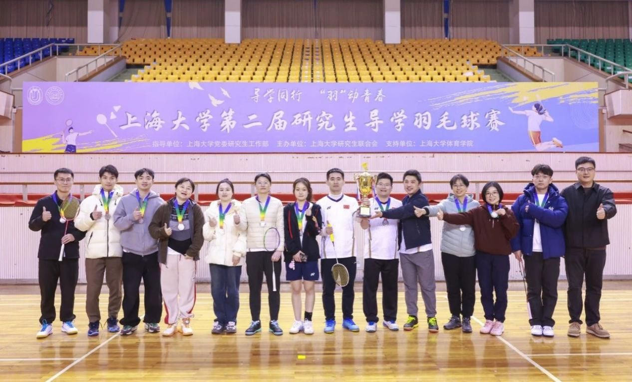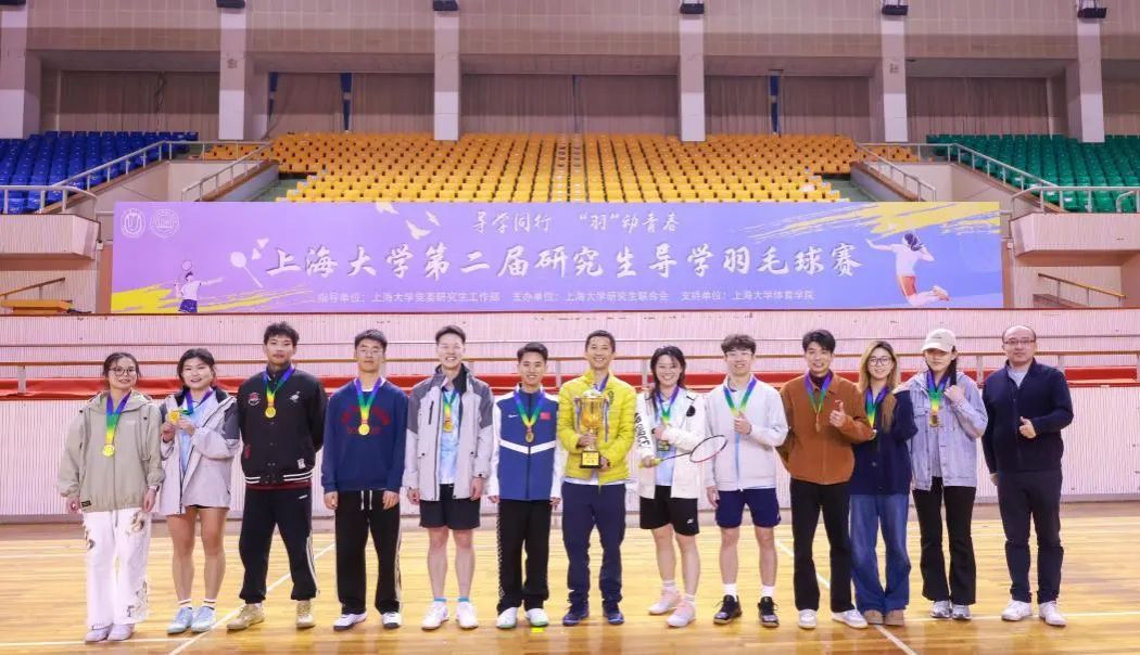 师生同场挥拍竞技,汗水挥洒青春赛场。伴随昂扬的运动员之歌,第二届研究生导学羽毛球赛圆满落幕。比赛的顺利举办离不开各学院工作人员、研会成员、志愿者团队、裁判团队的辛勤付出。