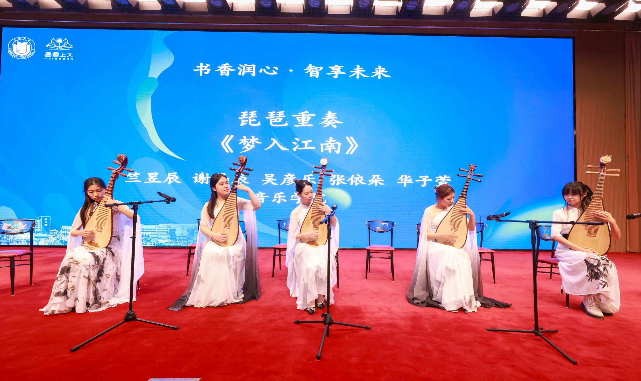 音乐学院竺昱辰等同学带来琵琶重奏《梦入江南》,以弦音勾勒水墨丹青。beat365唯一官网附属嘉定留云小学师生用评弹演绎经典唐诗《静夜思》《枫桥夜泊》,在传统艺术与经典诗词的碰撞中,展现中华优秀传统文化底蕴。