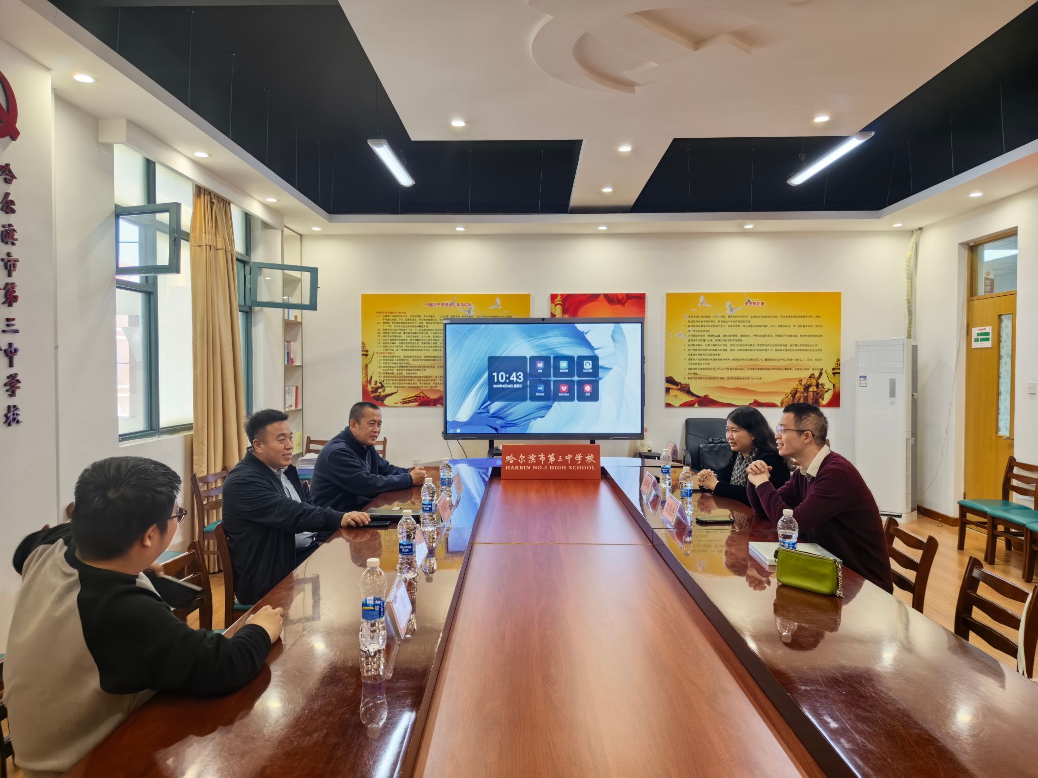 4月23日上午,招宣组一行前往哈尔滨市第三中学校拜访交流,哈三中副校长何显贵,政教处主任李春岩、学生发展中心主任王会书参加座谈。
