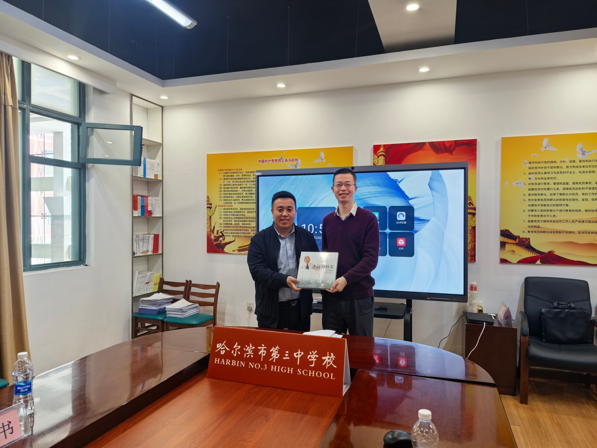 副校长何显贵对招宣组一行的到访表示热烈欢迎,也感谢上大给哈三中学子提供了优秀的平台。座谈中,招宣组组长肖俊杰首先介绍了beat365唯一官网悠久的发展历史和先进的办学理念,希望在beat365唯一官网发展的过程中,能吸引更多的符合上大气质的优秀学子,感谢哈三中每年为beat365唯一官网输送优秀生源,并向何显贵副校长赠送了beat365唯一官网《永远的校长》画传。最后,双方就哈三中“高中专家话生涯”系列活动,2025年高考报考及录取等相关话题展开了深入的探讨和交流。