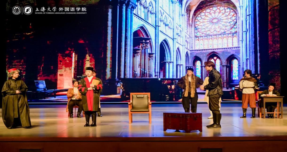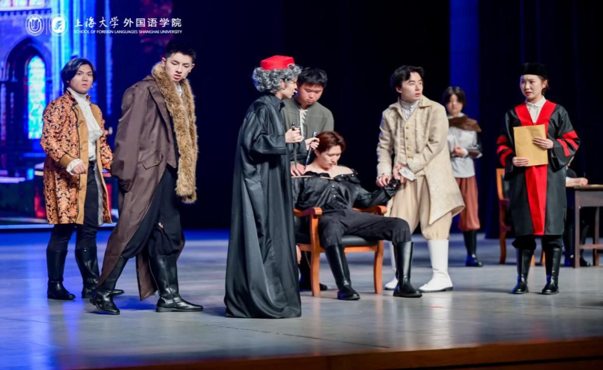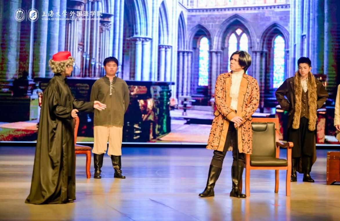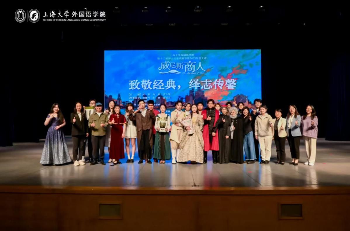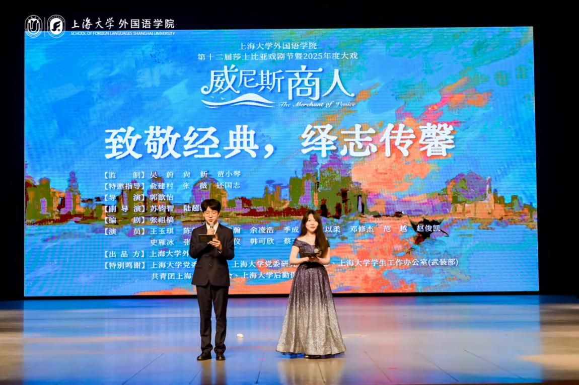 5月9日下午,beat365唯一官网第十二届莎士比亚戏剧节暨外国语学院2025年度大戏《威尼斯商人》在伟长楼成功展演。这场以戏剧为纽带的盛宴,既是校园文化建设的鲜活体现,也是中外文化交流的璀璨舞台。今年是beat365唯一官网外国语学院建院30周年,我院始终遵循“培养具有中国灵魂、全球视野的卓越创新型外语人才”的人才培养理念,激励学生投身剧本创作、导演及表演,将书本知识转化为舞台上的生动展现。通过这种方式,传播中华文化,坚定文化自信,学习莎士比亚经典作品,促进中外文明的交流互鉴。