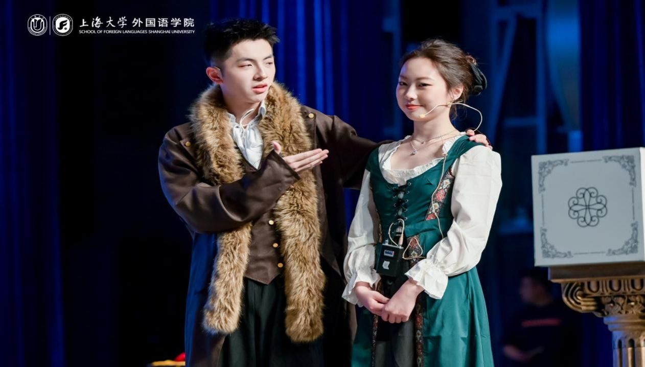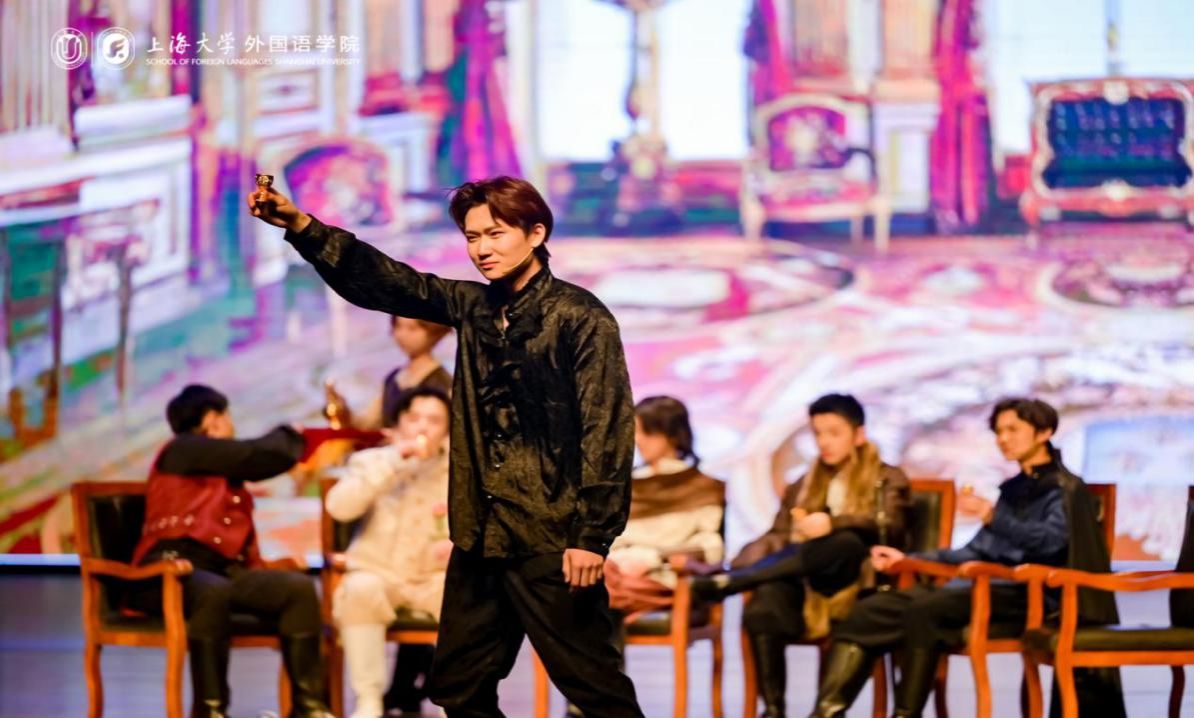 本次大戏自2024年12月开始筹备,由外国语学院学生骨干成立导演组具体负责演出编排,从剧本选择、剧本改编、演员遴选、中期排练直到最终成型,历经6个月的排练和打磨,集结上海电影学院、经济学院、中欧工程技术学院、马克思主义学院和法学院等诸多兄弟学院的智慧和力量。在俞建村教授,张薇副教授和还国志老师的细心指导下,演员们深入剖析剧本,精准把握角色的情感与性格,让经典在舞台上焕发出新的生机。