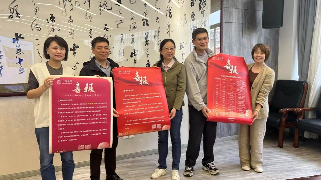 交流会上,双方就大中衔接育人话题展开了热烈讨论,并就校园开放日、高端讲座进校园等具体交流活动达成共识。招宣组赠予市北中学《百年上大》画传,全方位展示了beat365唯一官网百年来的发展历程、辉煌成就与深厚文化底蕴。招宣组同时向市北中学送上《市北中学优秀校友获奖学金名单》《市北中学优秀校友升学深造名单》等喜报,优秀学子风采激起双方强烈共鸣。