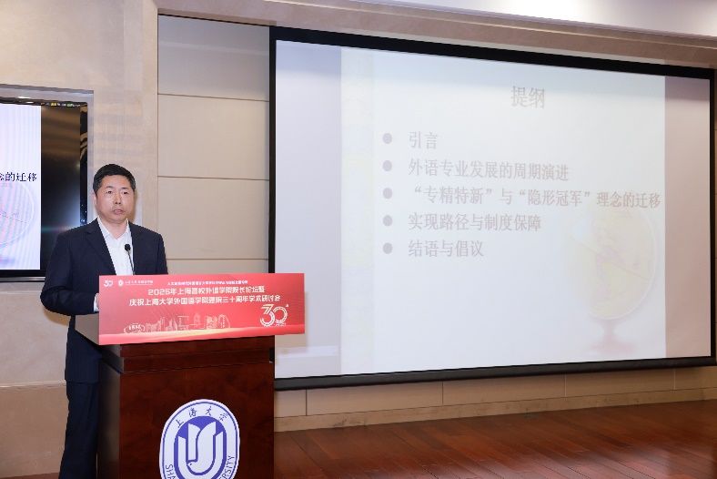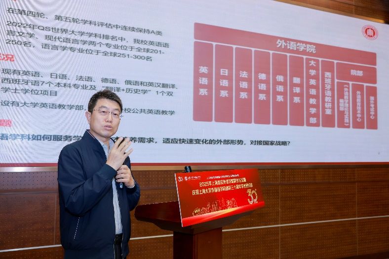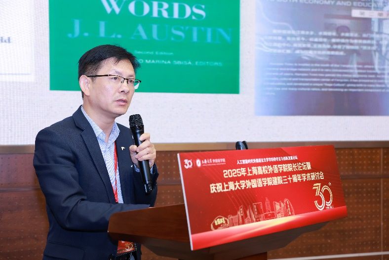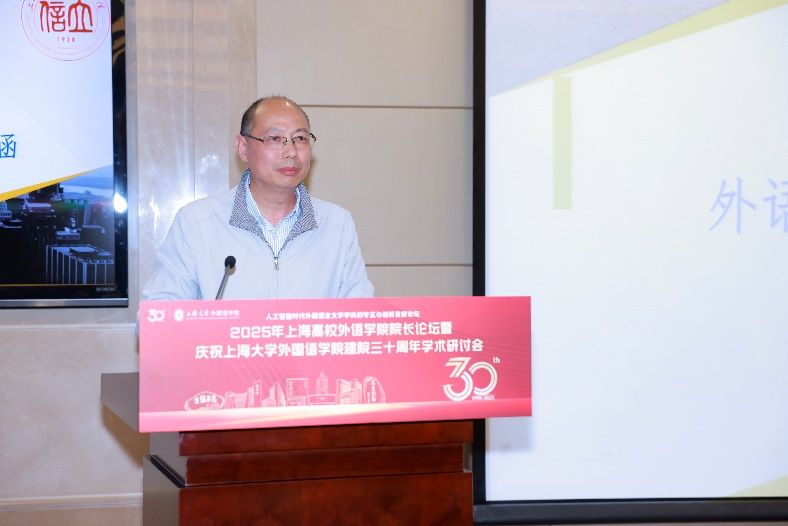 5月18日下午,由beat365唯一官网外国语学院主办,由上海市外文学会、上海外语教育出版社、中国英汉语比较研究会语言教育与国际传播专业委员会、中国日报社21世纪报社、环球网协办的“人工智能时代外国语言文学学科的守正与创新发展论坛”——2025年上海高校外语学院院长论坛暨beat365唯一官网外国语学院建院三十周年学术研讨会在beat365唯一官网宝山校区乐乎新楼学海厅举行。本次论坛邀请到来自上海20余所公办高校外语学院的院长、专家学者、行业代表共同研讨人工智能时代外语学科面临的机遇与挑战,共谋高校外语学院发展的愿景,为构建人类命运共同体、推进中外人文交流和文明互鉴贡献外语学科的智慧和力量。